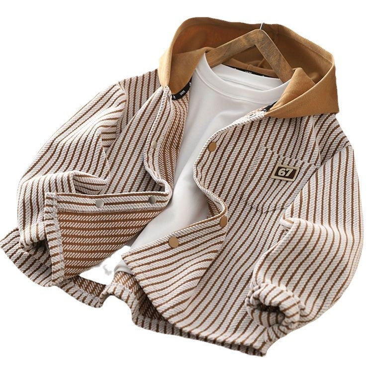 Boys' Striped Hooded Top 2024 Autumn Spring Casual Coat