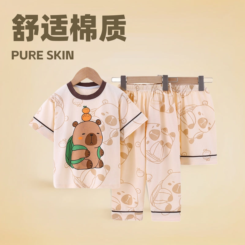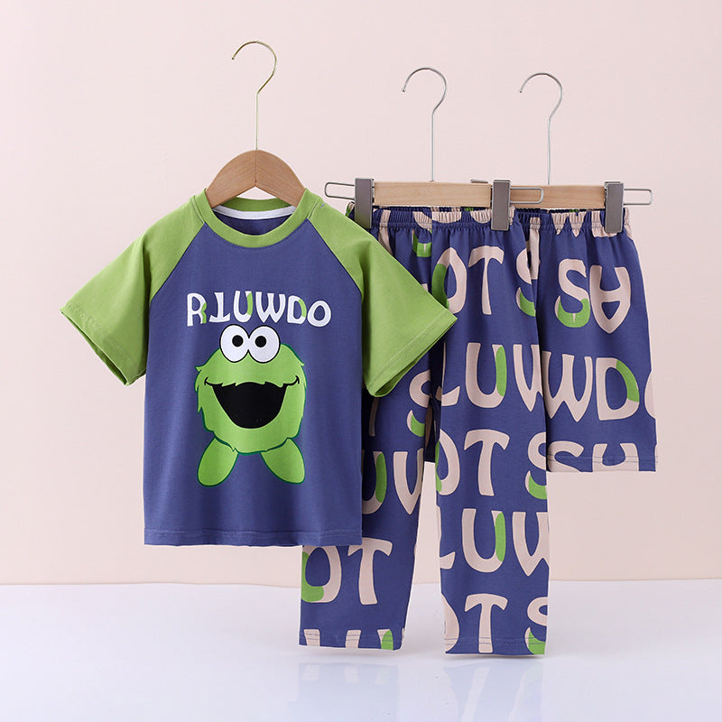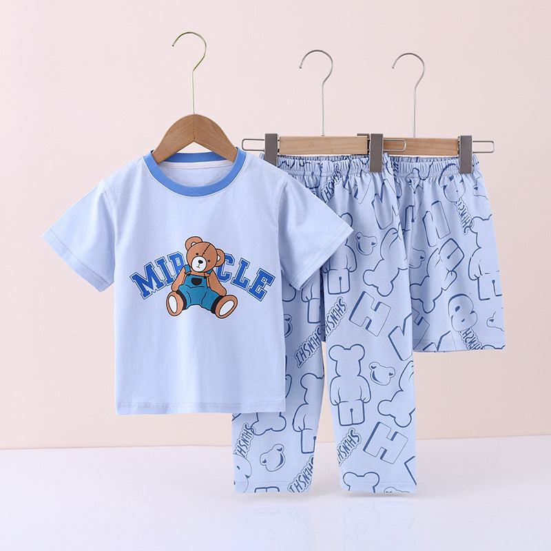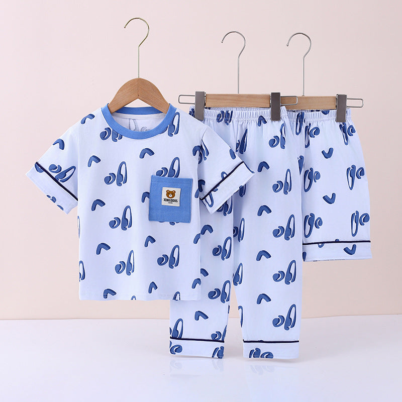 Boysโ Summer Cotton Pajama Set โ 3-Piece Suit