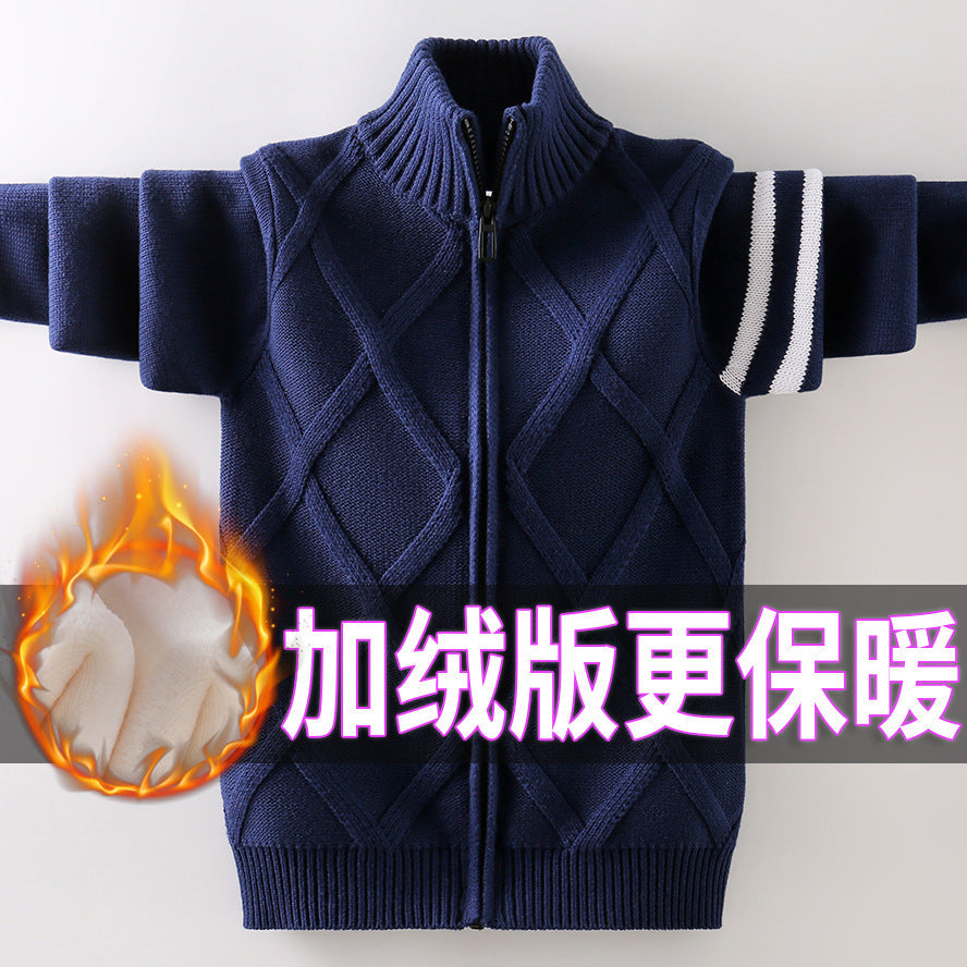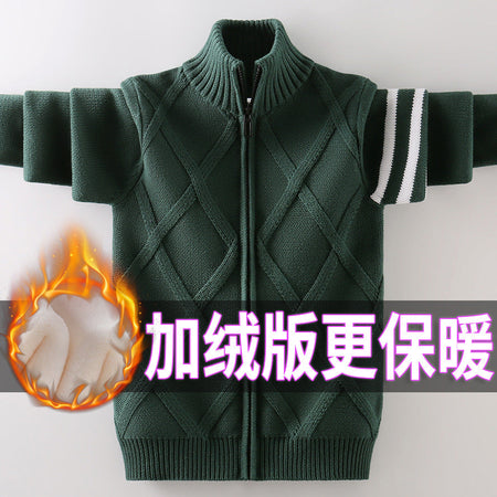 Boys’ Thickened Sweater Cardigan Spring Autumn Fashion