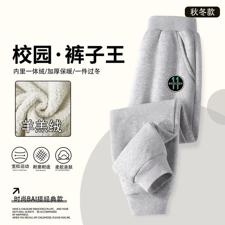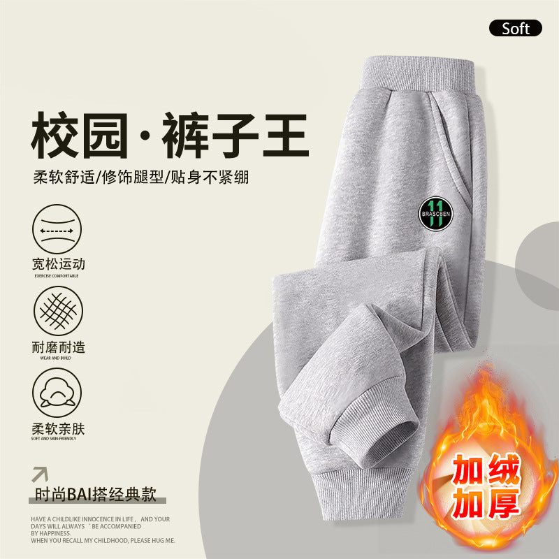 Boys' Sweatpants Korean Style Fleece-Lined Thickened Casual Pants