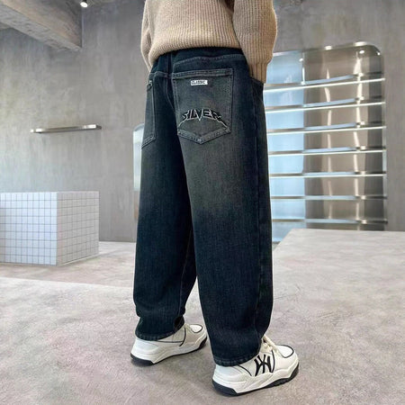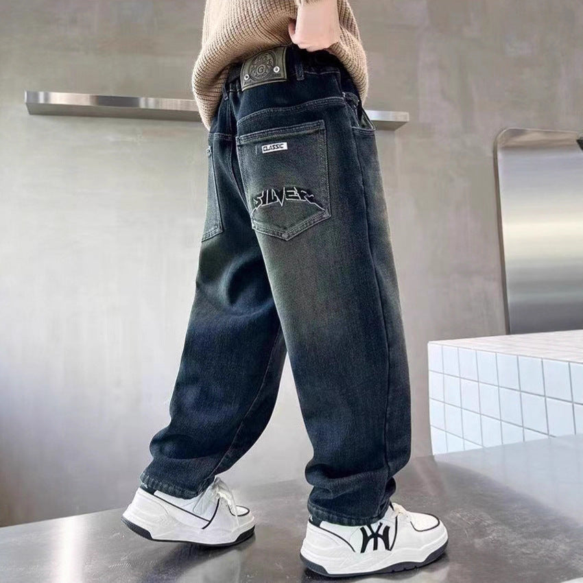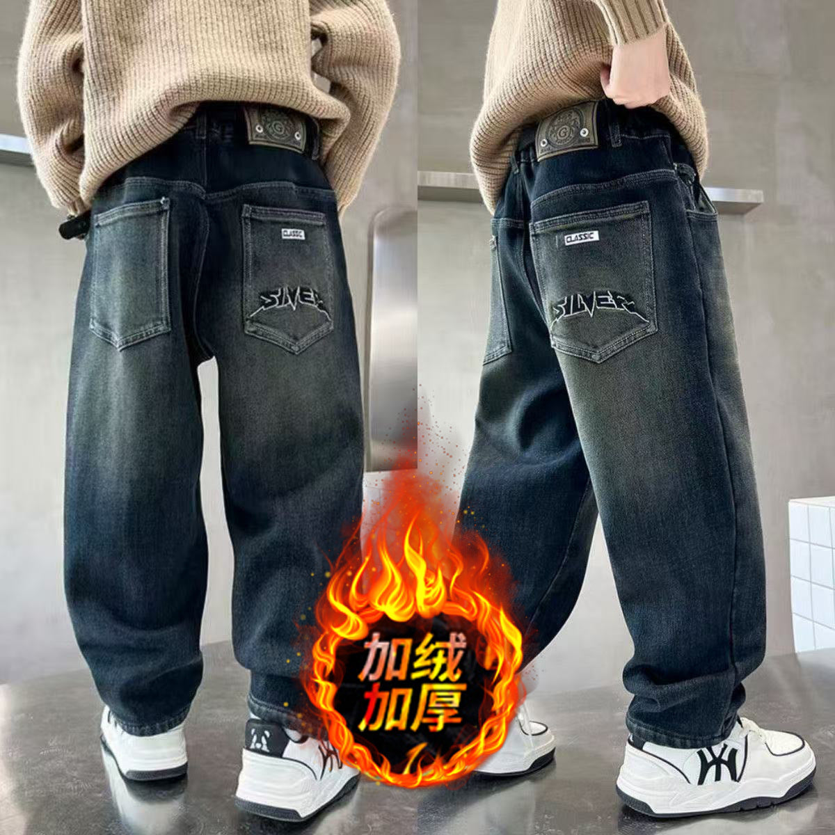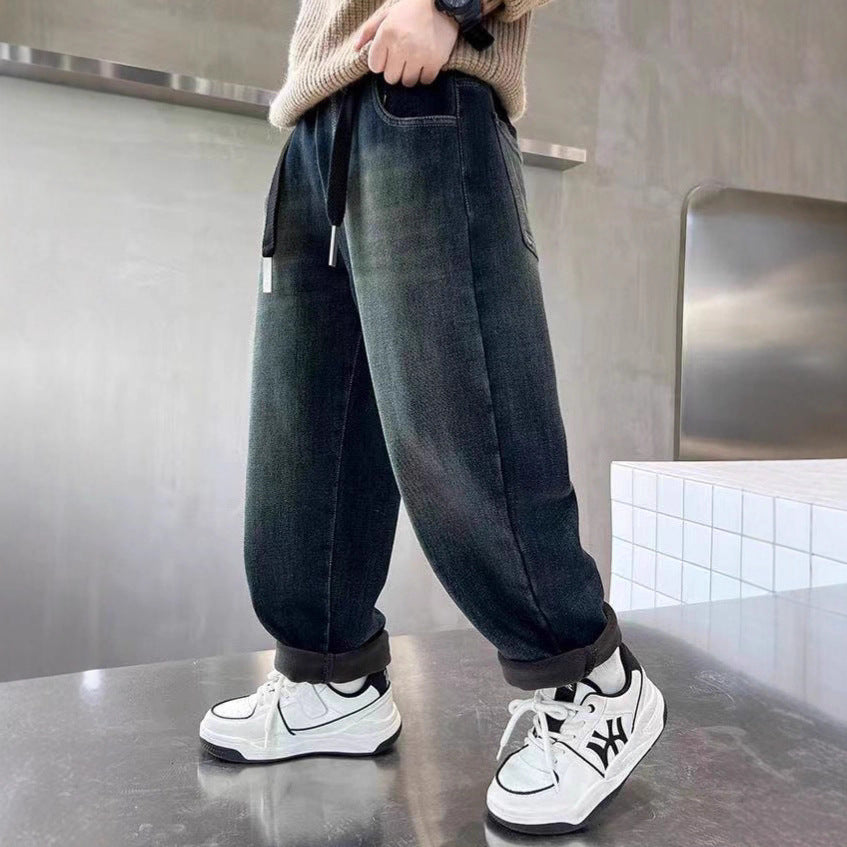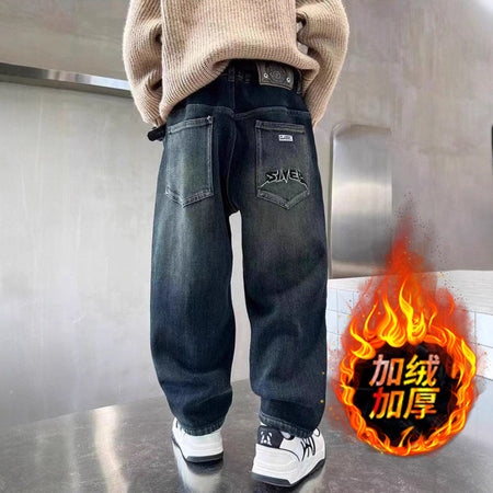 Boys Thickened Fleece Jeans Autumn Winter Casual Pants