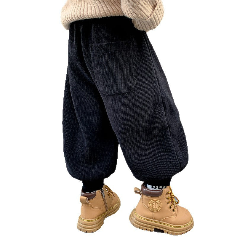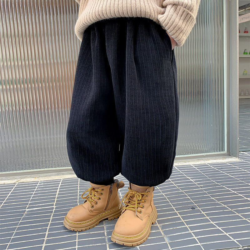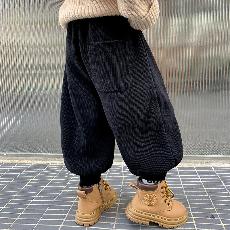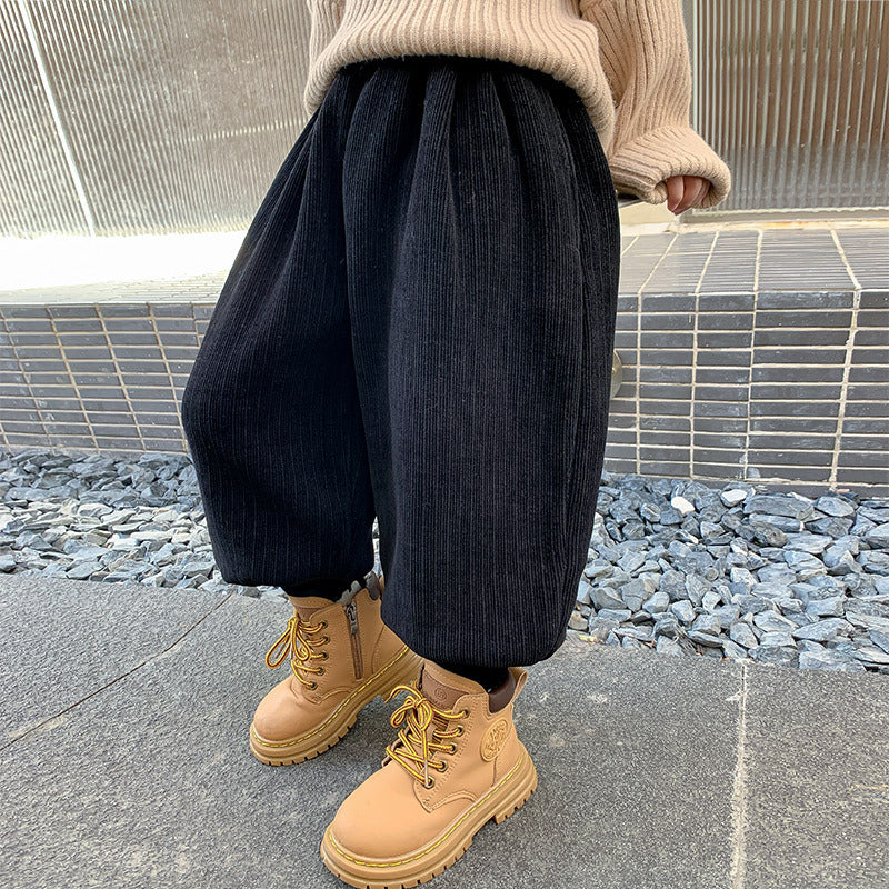 Easy to pair with sweaters, hoodies, jackets, and winter shoes, these velvet pants are a practical choice for school routines and family outings.