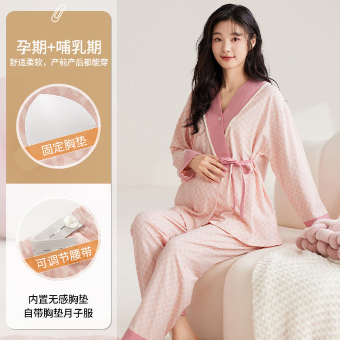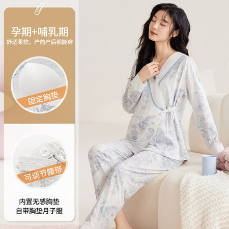 Maternity Nursing Pajamas Set with Chest Pad Two-Piece