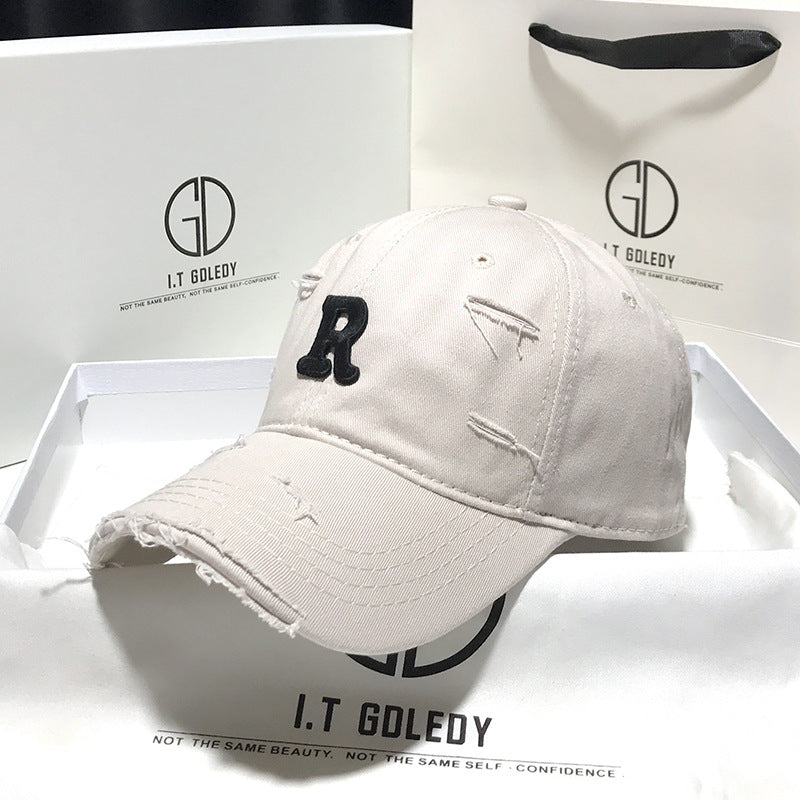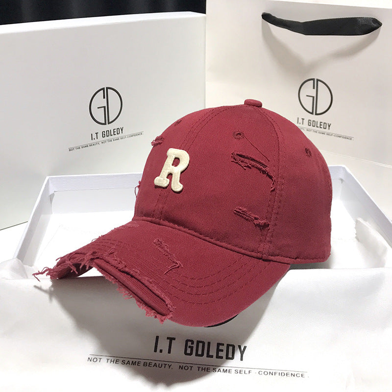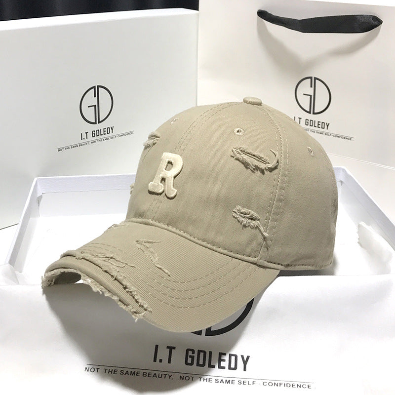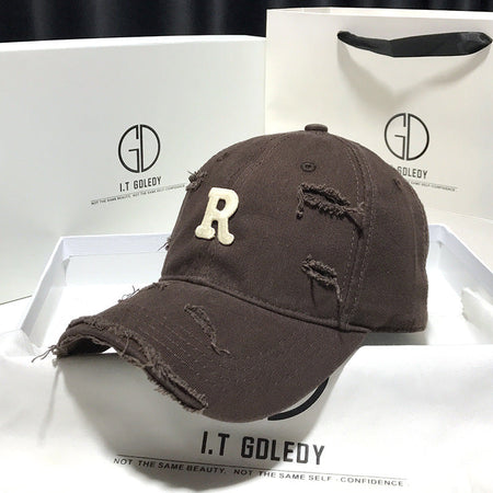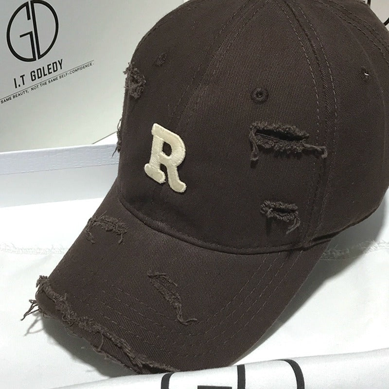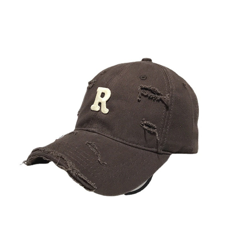 Brown Ripped Baseball Cap – Trendy Sun Hat for Men