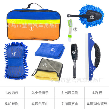 Car Wash Tool Set 8-Piece Sponge Towel Hub Brush Cleaning