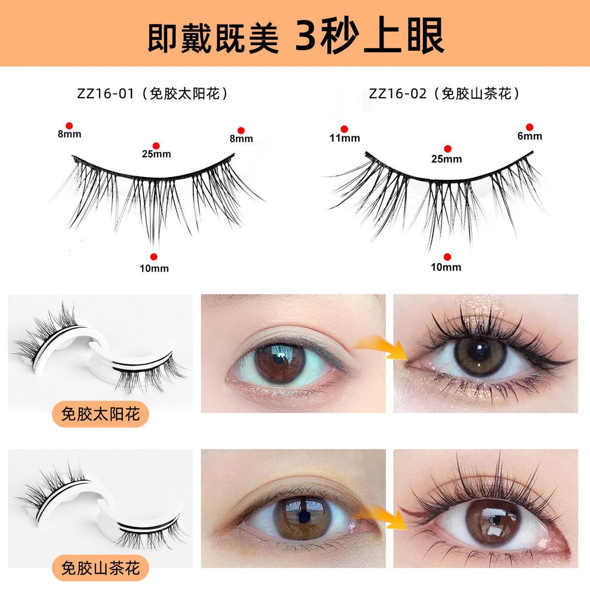 Perfect for daily wear or special occasions, the warm self-adhesive design ensures a secure, comfortable fit without irritation. Achieve a fuller, fluttery lash look in seconds and enjoy the convenience of glue-free application. Ideal for beginners and makeup pros alike.