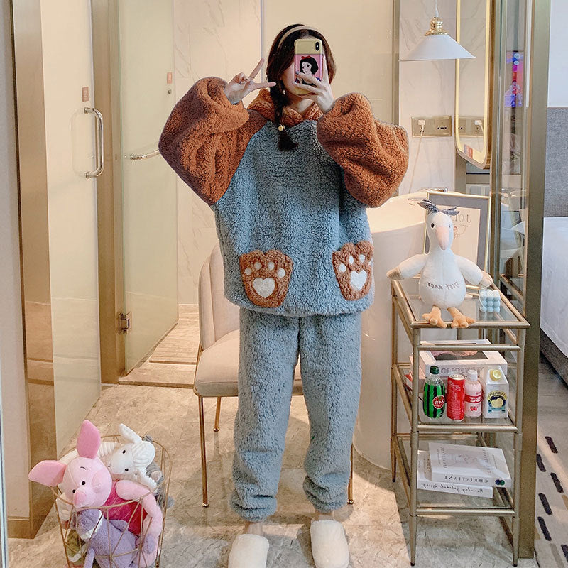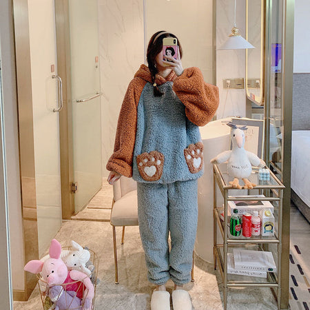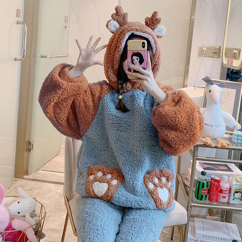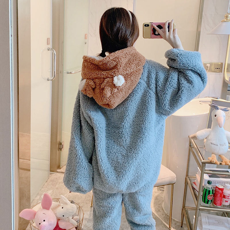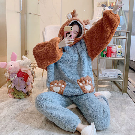 Cute Cartoon Hooded Pajamas – Girls’ Thick Winter Loungewear