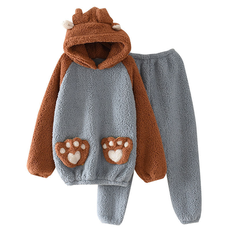Stay warm and adorable all season long with these Cartoon Cute Hooded Pajamas for Girls! 🐑💖 Made from ultra-soft thickened lambskin fleece, this pullover set is perfect for chilly autumn and winter nights at home.