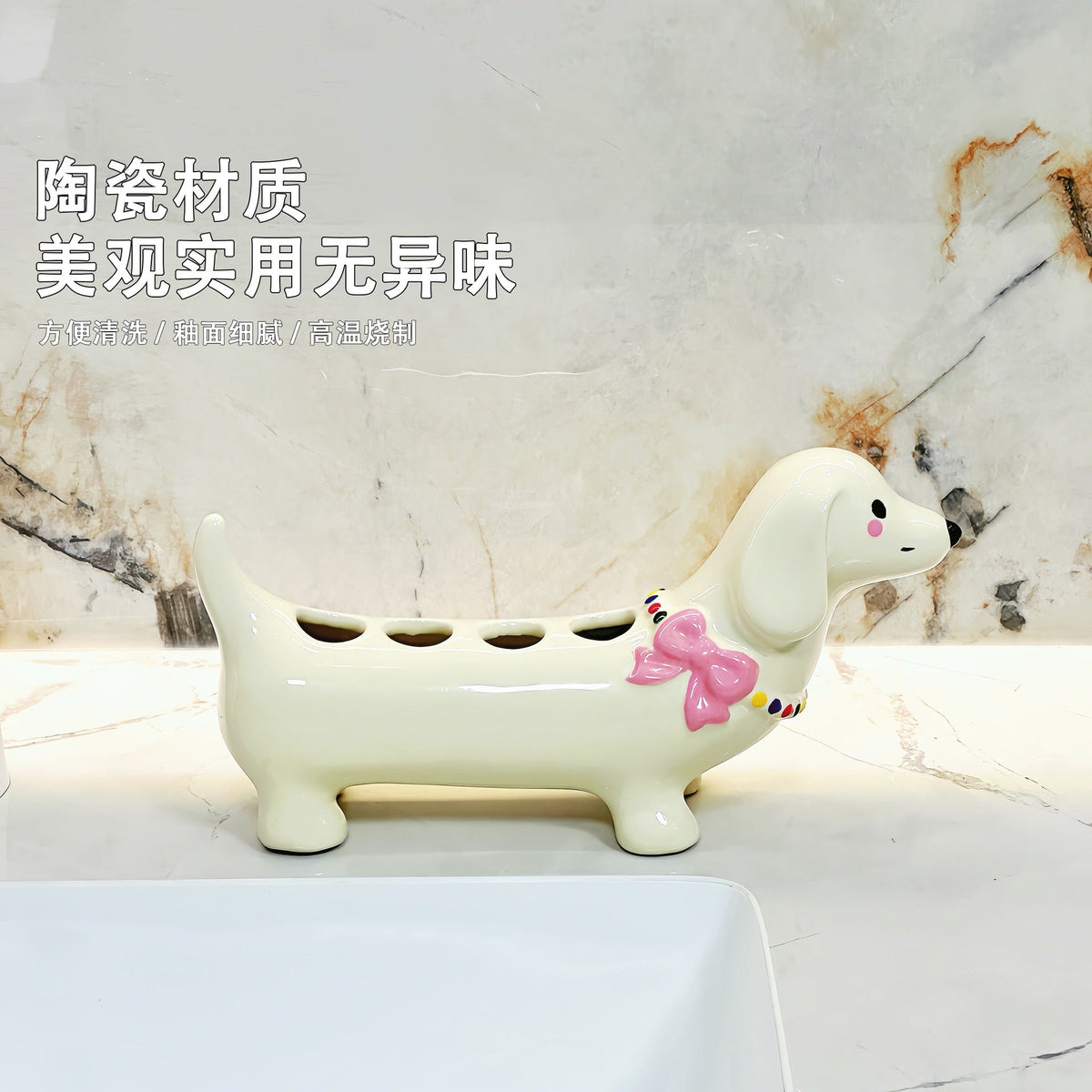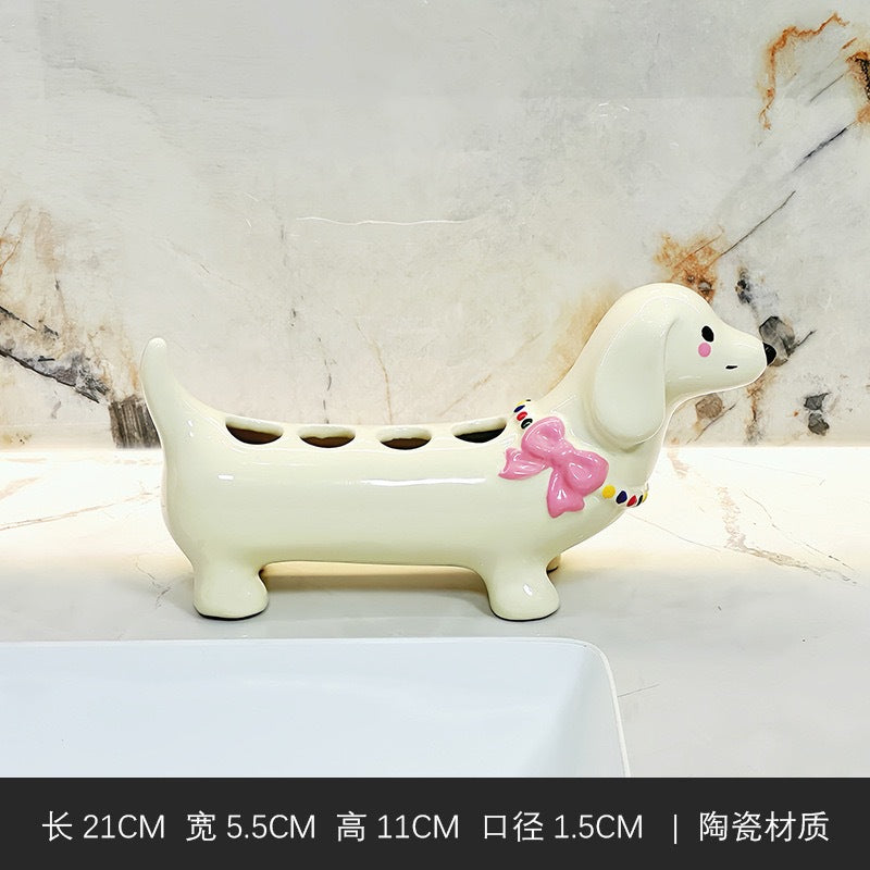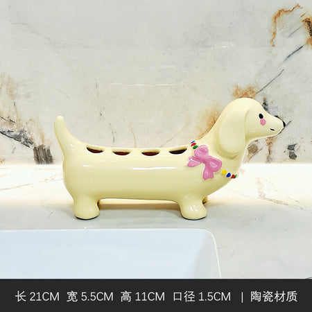 Add a touch of fun and functionality to your bathroom with this cartoon dachshund toothbrush holder. π Designed for practicality and charm, it is perfect for organizing manual toothbrushes and keeping your sink area tidy while bringing a cheerful vibe to your home.