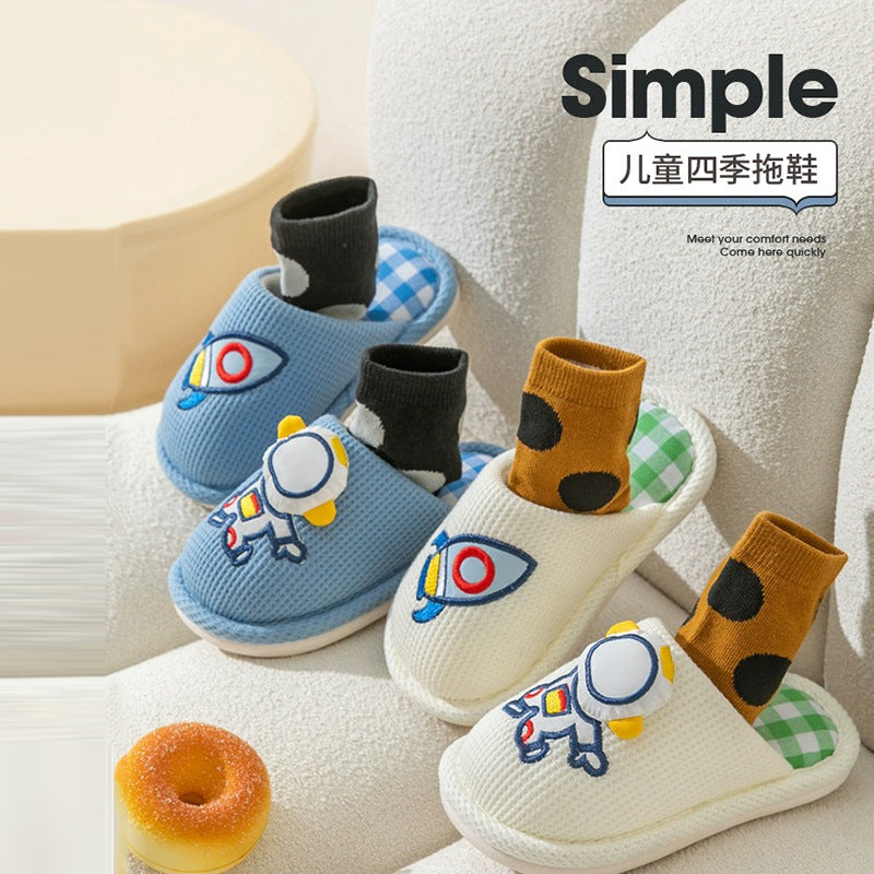 Cartoon Linen Slippers for Children β Four Seasons Home Shoes
