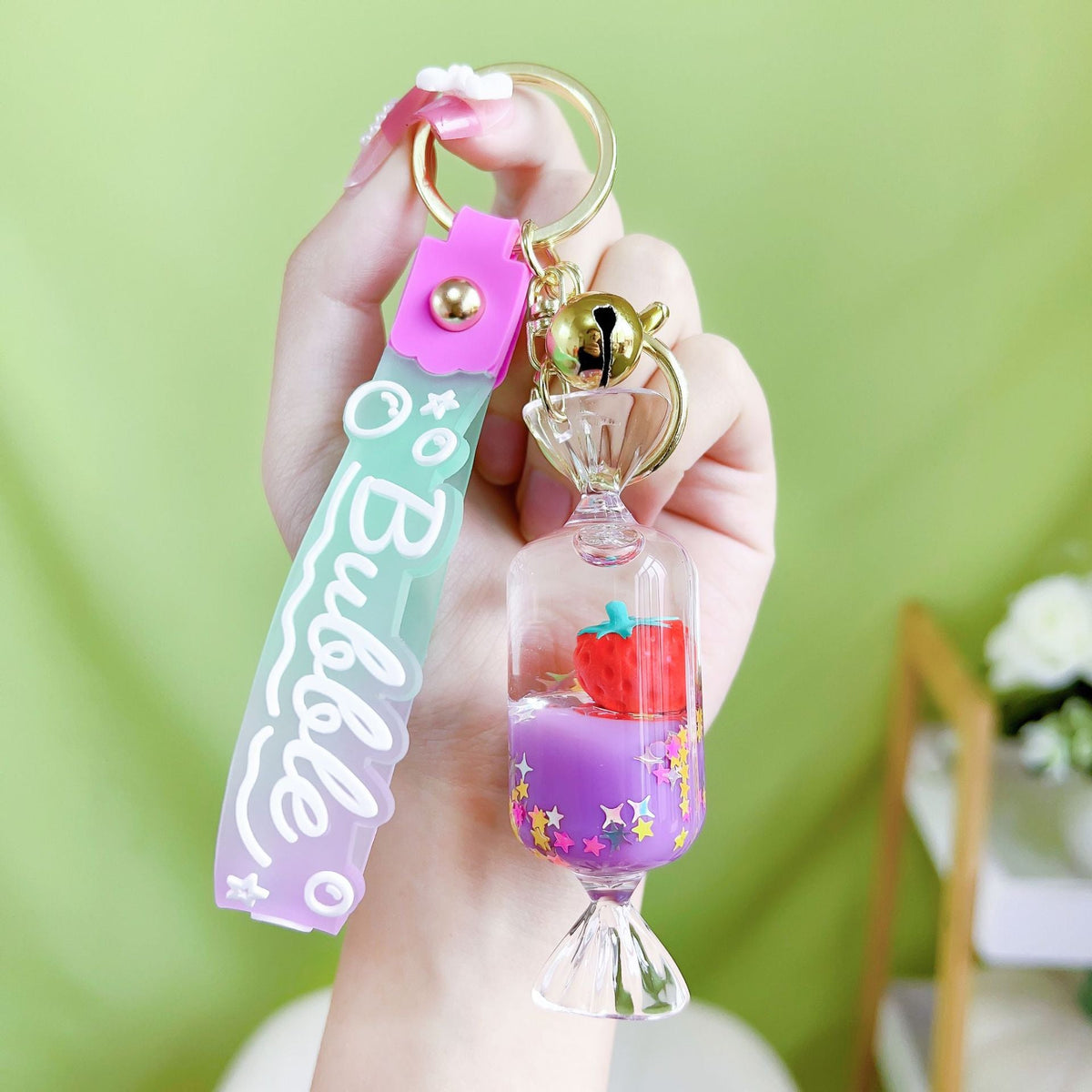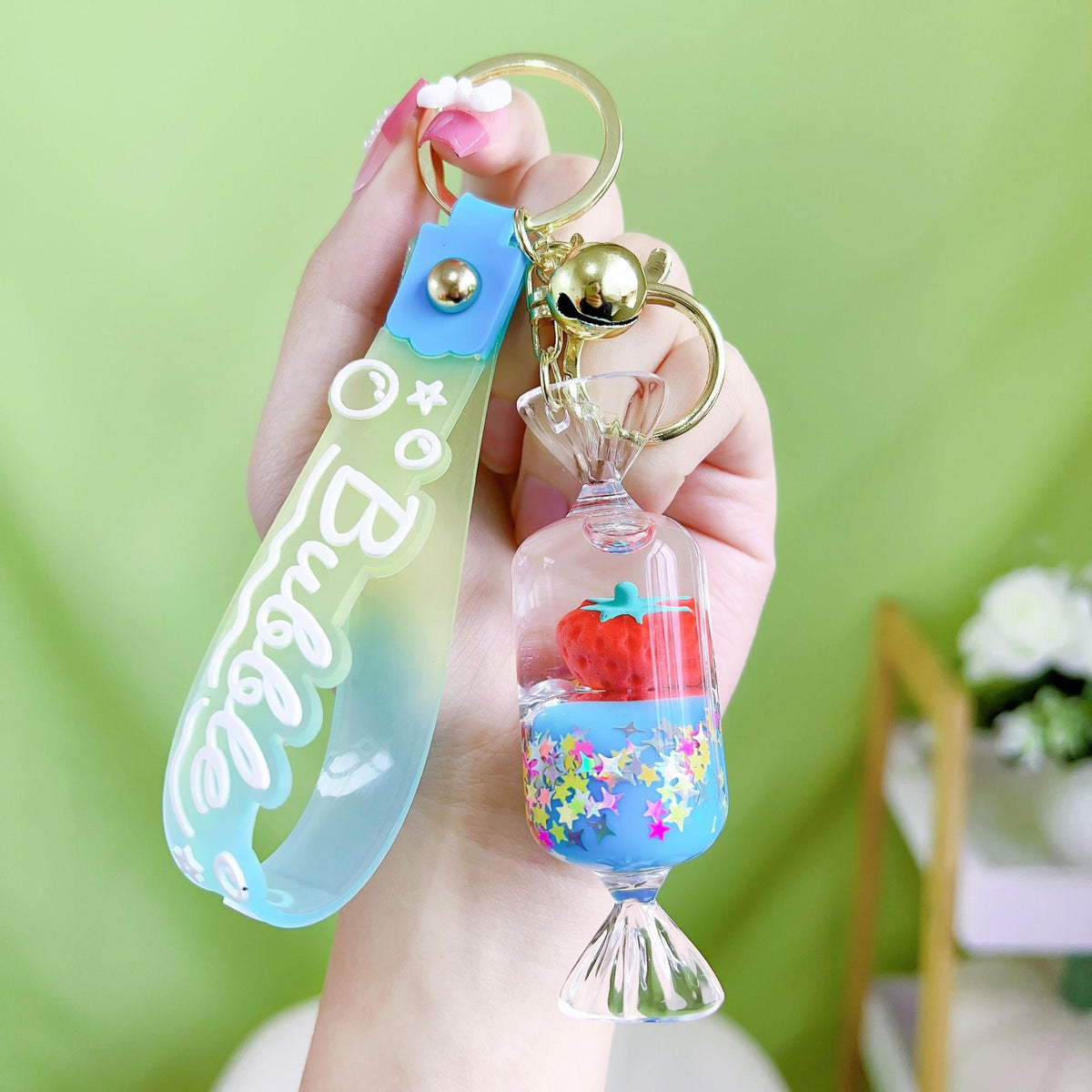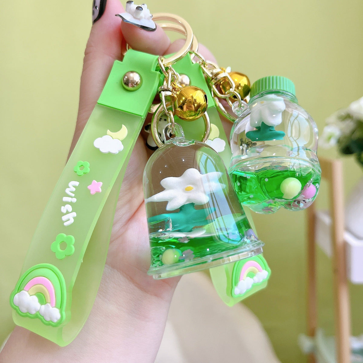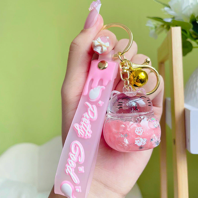 Acrylic Quicksand Bottle Keychain – Fun Cartoon Charm