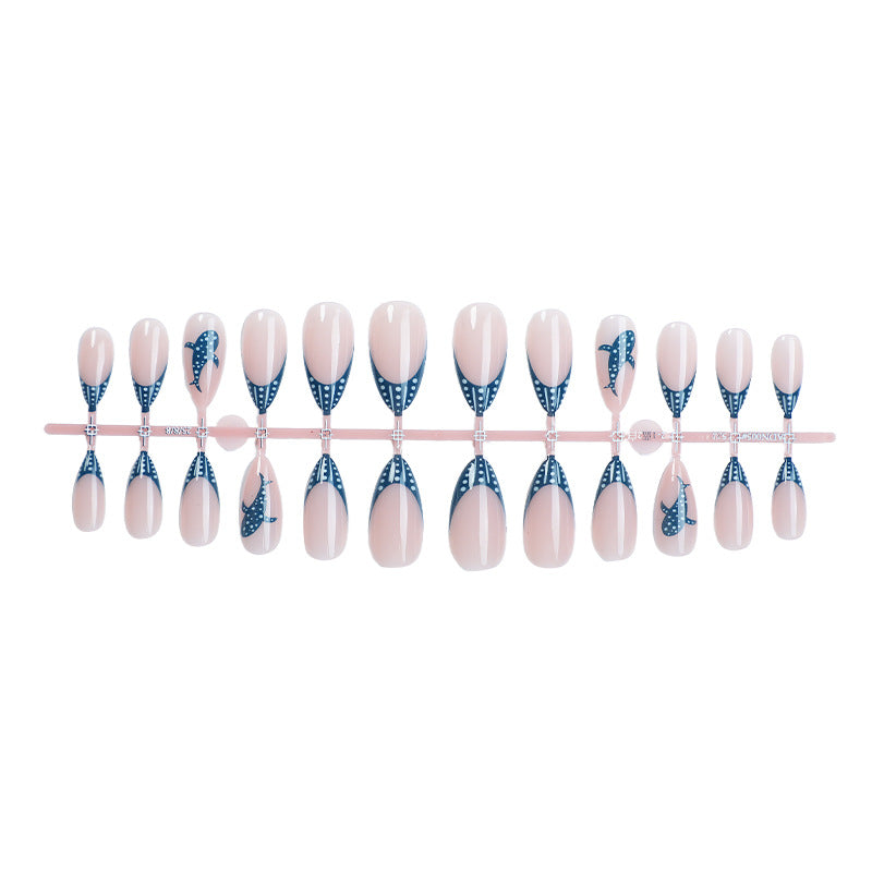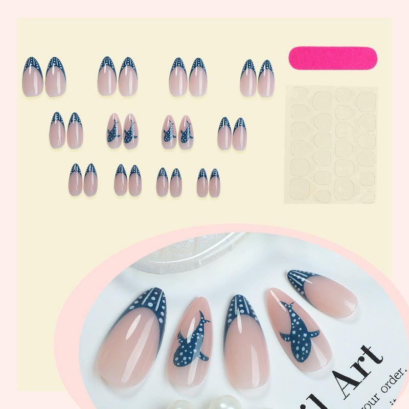 Cartoon Shark Almond-Shaped Blue Ocean 24-Piece Fake Nails
