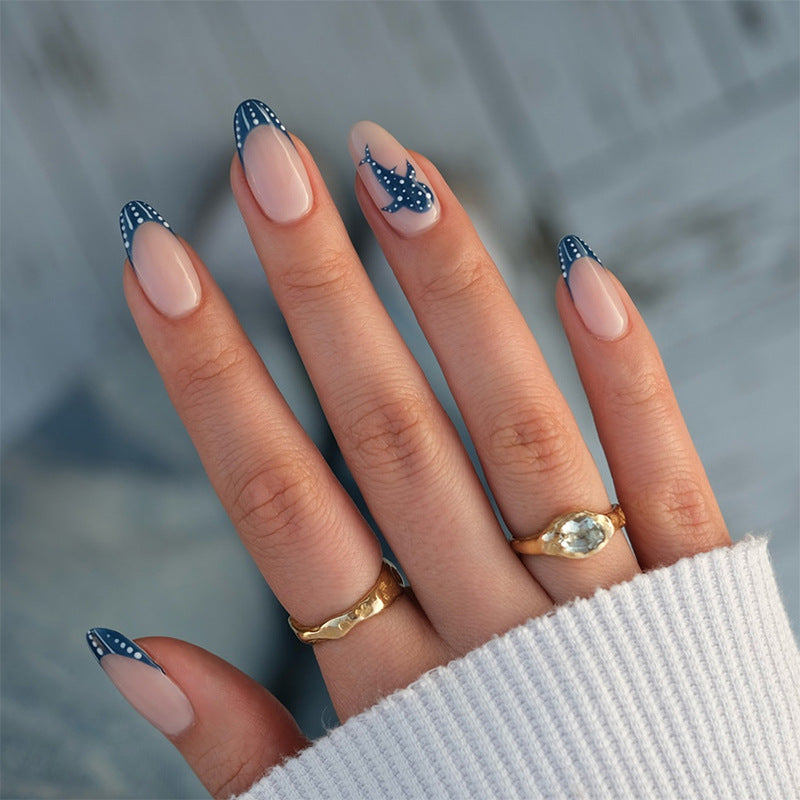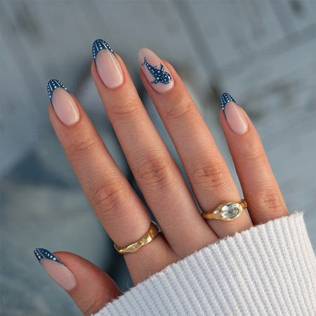 If you want fun, stylish, and easy-to-wear nails with a trendy blue ocean and shark theme, the Cartoon Shark Almond-Shaped Fake Nails are your perfect choice. Get instant, playful nail art with minimal effort!