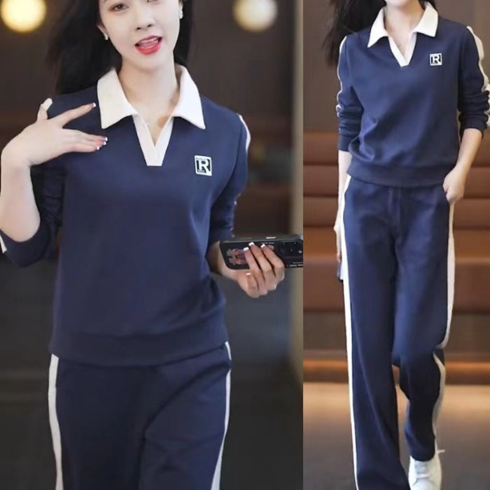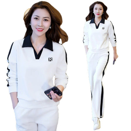 The simple lapel sweater adds a clean, modern touch, while the sweatpants provide comfort and flexibility. The two-piece set ensures effortless mix-and-match style.