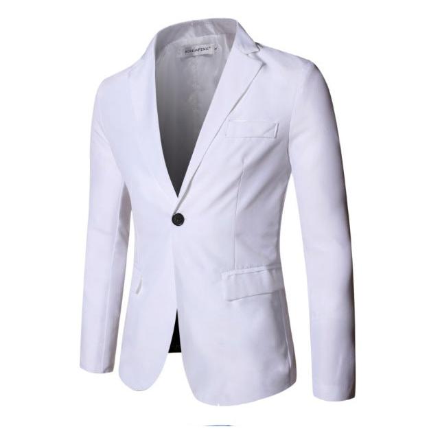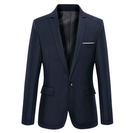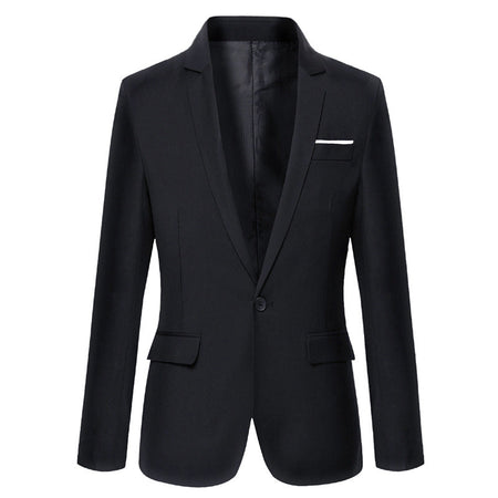 Polished and versatile, this slim-fit Korean men’s casual suit jacket is designed for young and middle-aged men alike. With a sleek black finish and single-piece design, it’s a must-have for spring and autumn dressing.