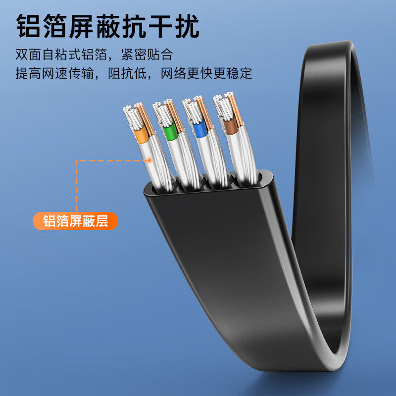 Cat7 Flat Ethernet Cable Shielded RJ45 Pure Copper 10Gbps
