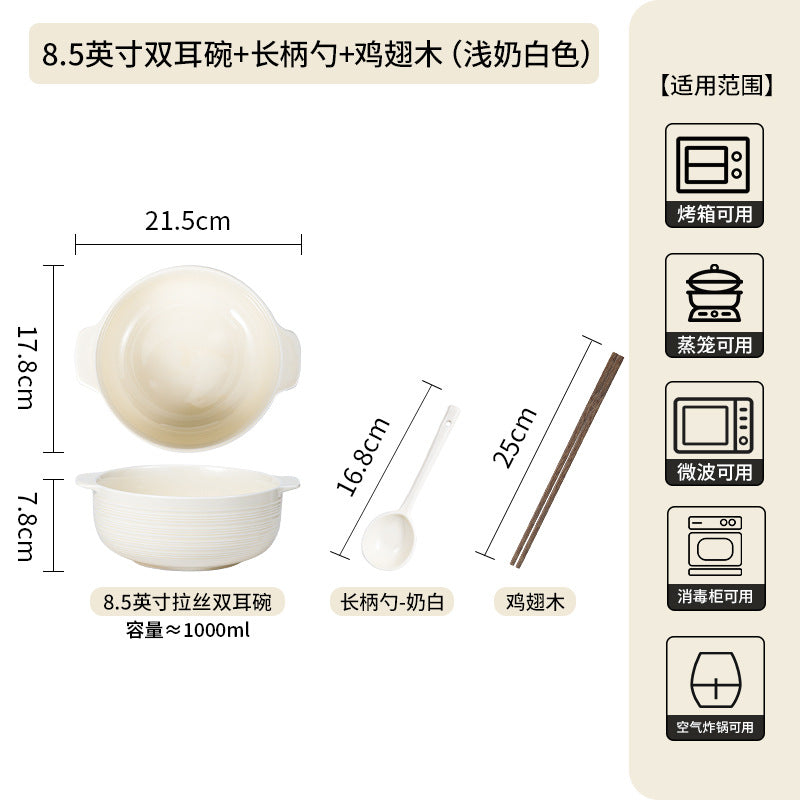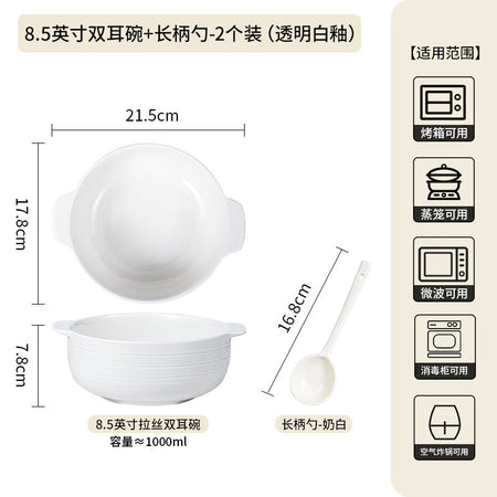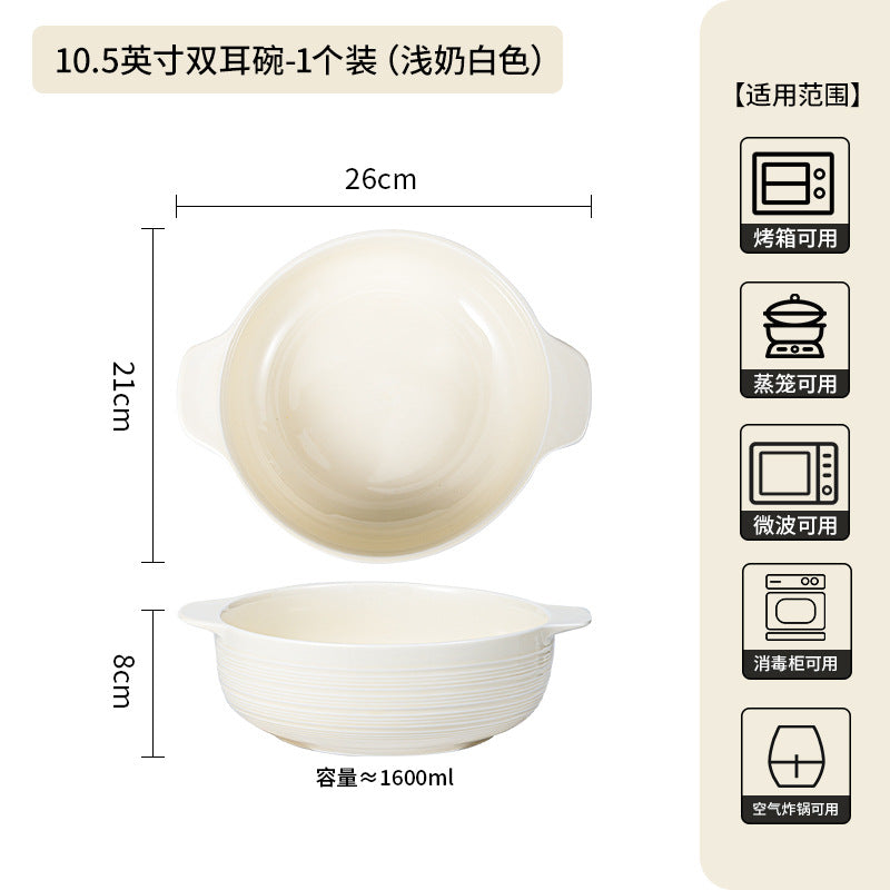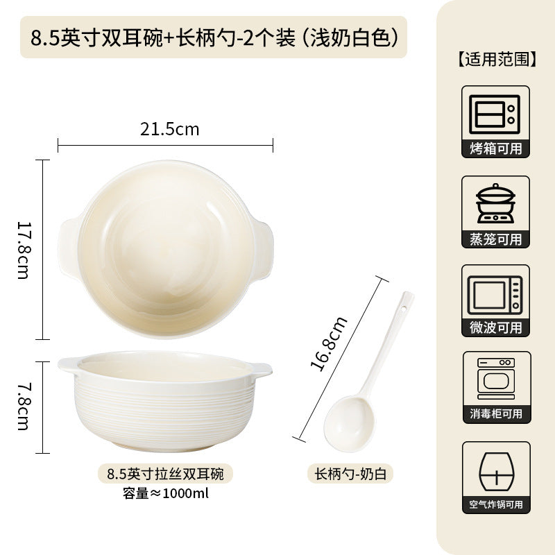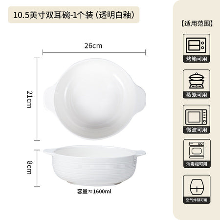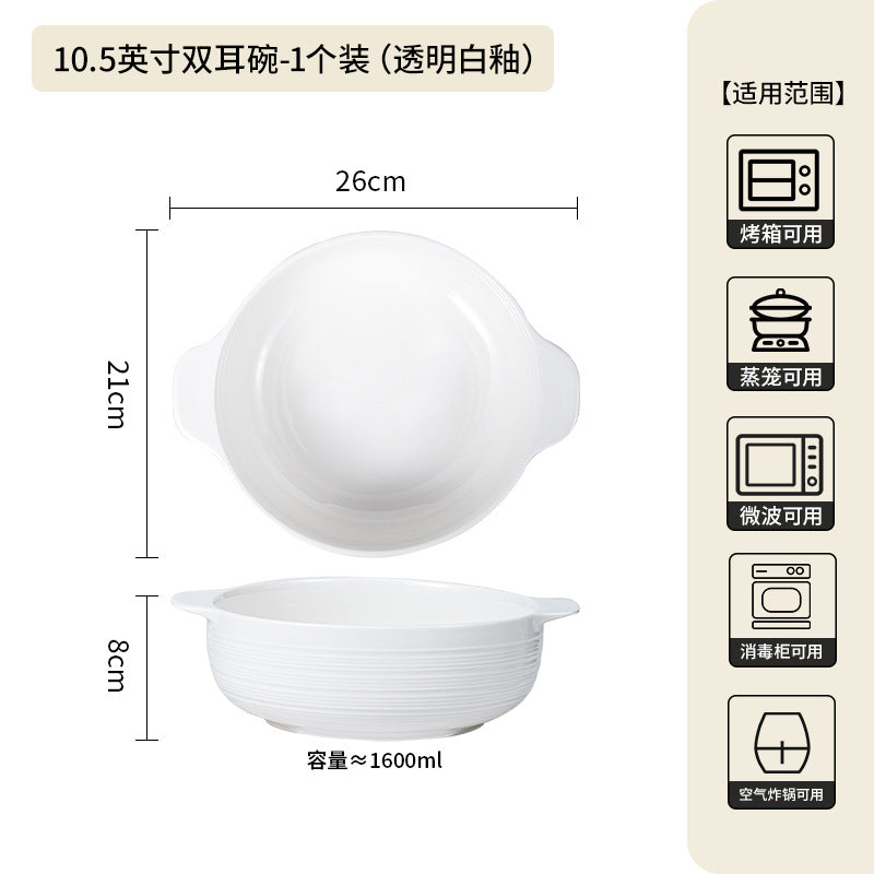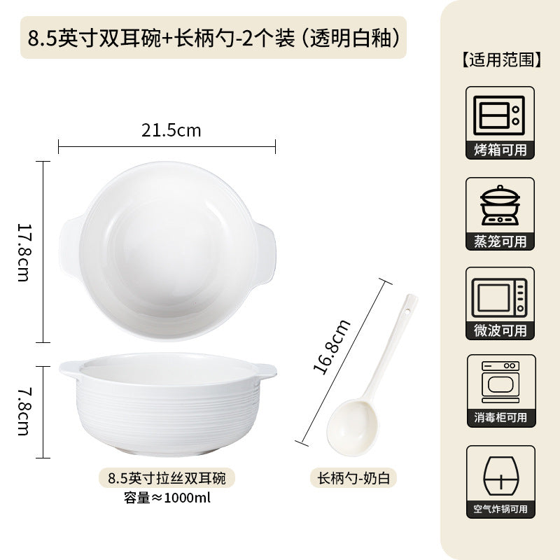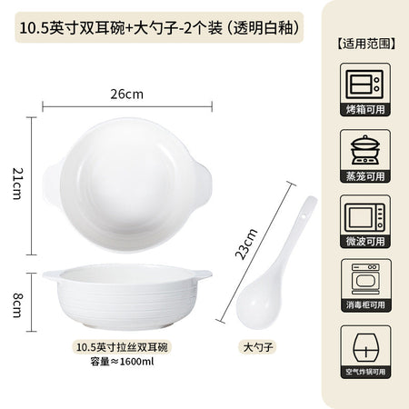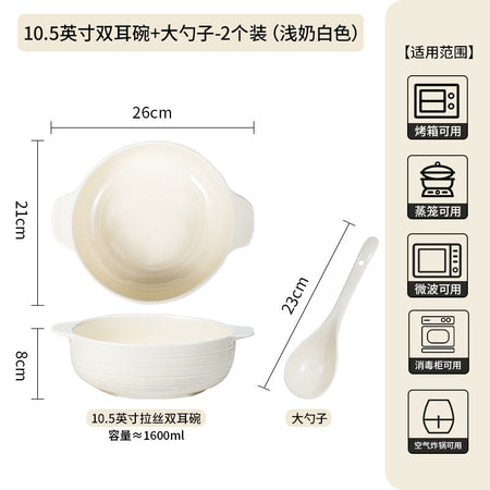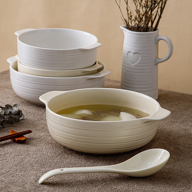 Ceramic Double-Handle Soup Bowl Large Capacity Basin - 2 Pc