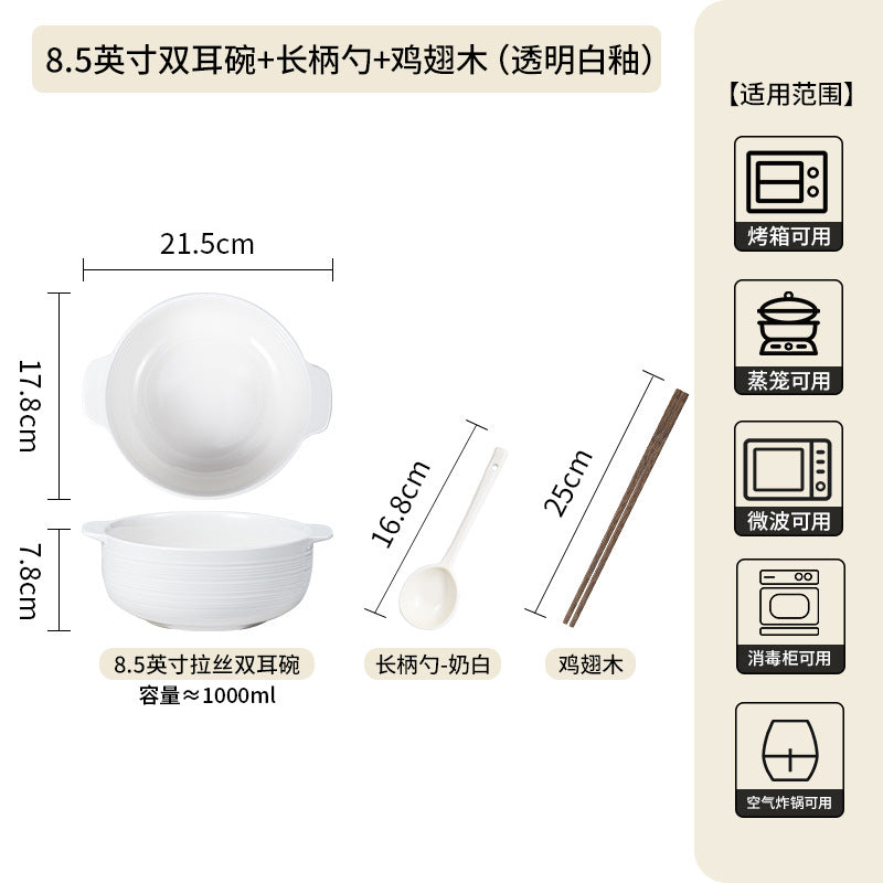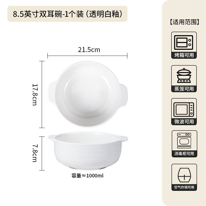 Serve delicious soups and hot dishes in style with this ceramic double-handle soup bowl, designed for both home and restaurant use. Featuring a large capacity and anti-scalding handles, it’s perfect for pickled fish, ramen, or family-style stews.