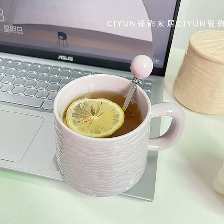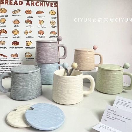 Large Ceramic Mug with Lid & Spoon