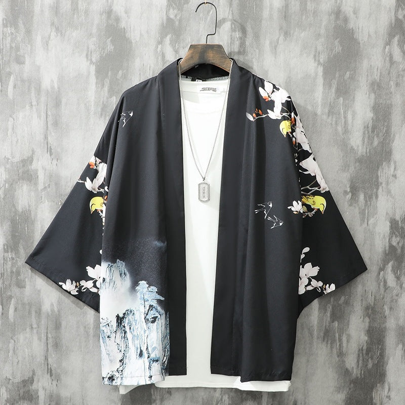 Men’s Summer Hanfu Kimono Cardigan Loose Sunscreen