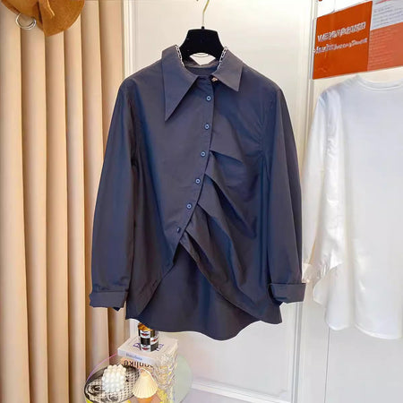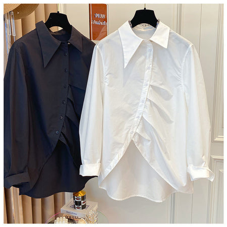 Elevate your wardrobe with this 2025 Women’s Chic Asymmetrical White Shirt 👗✨. Featuring a niche loose fit and a French pointed collar, this long-sleeved top exudes high-end fashion sense for spring and autumn.