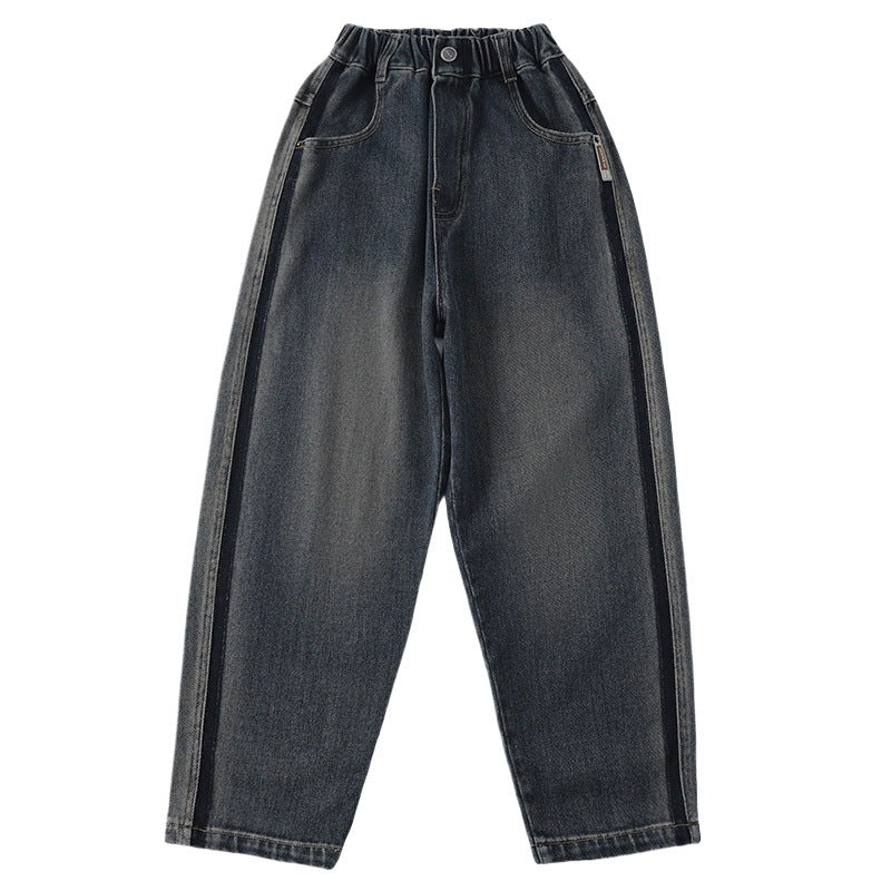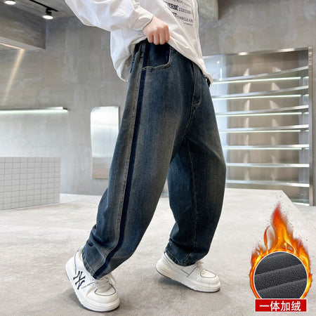 Children Plus Velvet Fleece Lined Jeans Loose Winter Pants