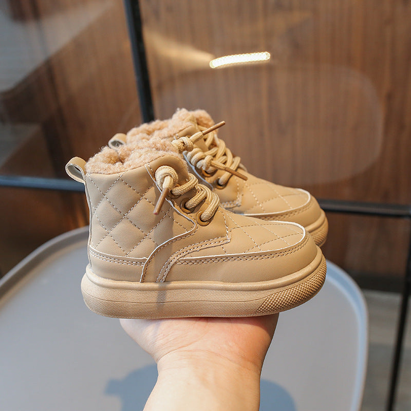 Kids’ Leather Snow Boots – Warm Velvet Winter Shoes