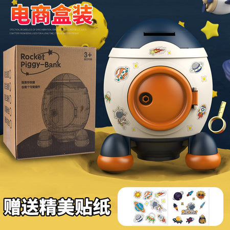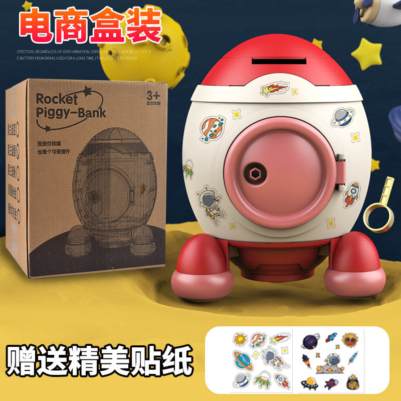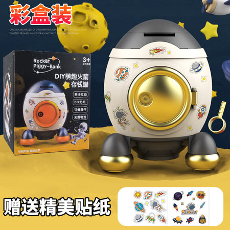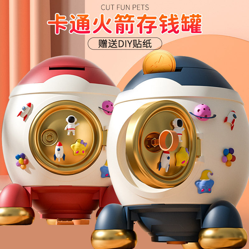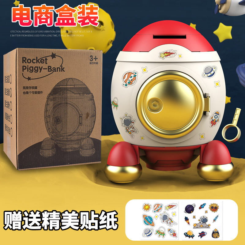 Rocket-Shaped Cartoon Piggy Bank with Lock