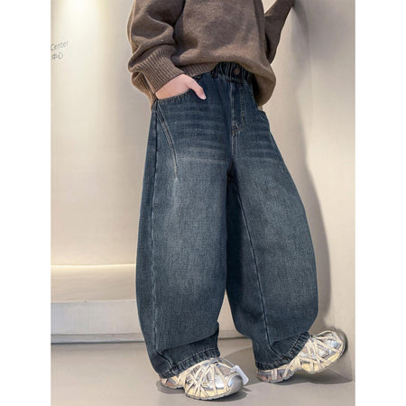 Boys’ Winter Fleece Jeans Thickened Casual Pants