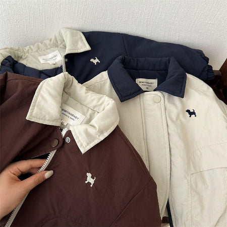 Make his outfit fun and cozy with this Cartoon Puppy Baseball Jacket 🐶. Featuring a cute lapel design with soft padding, it’s ideal for both boys and girls in autumn and winter.