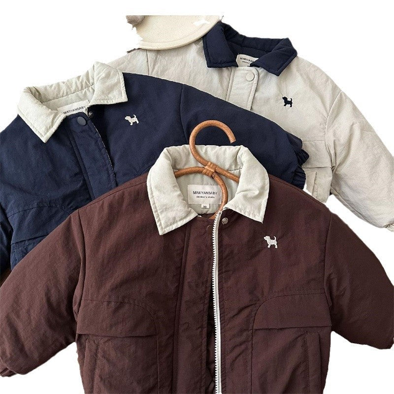 Boys’ Cartoon Puppy Baseball Jacket – Cotton-Padded Coat