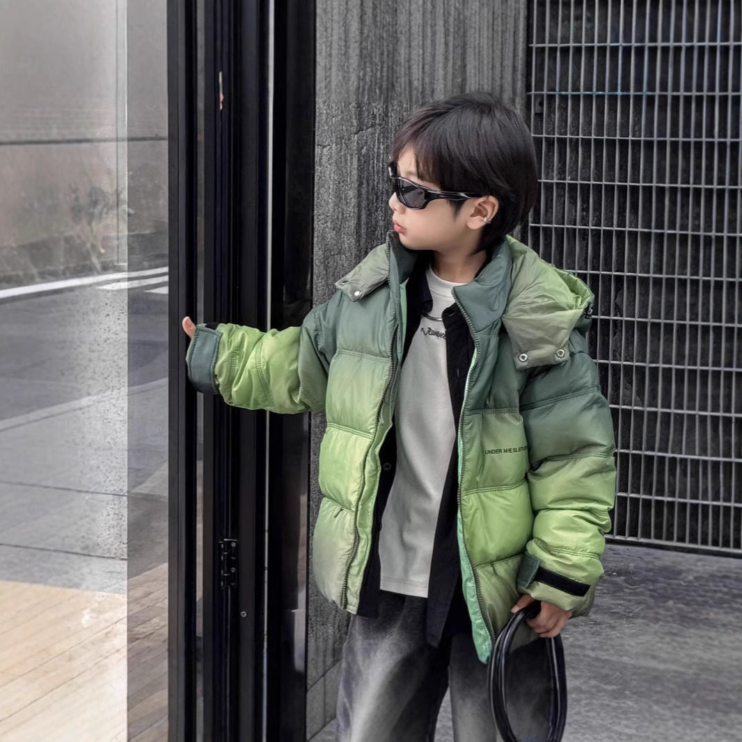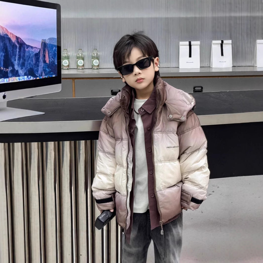 This kids down suit is ideal for snowy days, outdoor photoshoots, and festive occasions. Parents appreciate the combination of warmth, style, and durability.