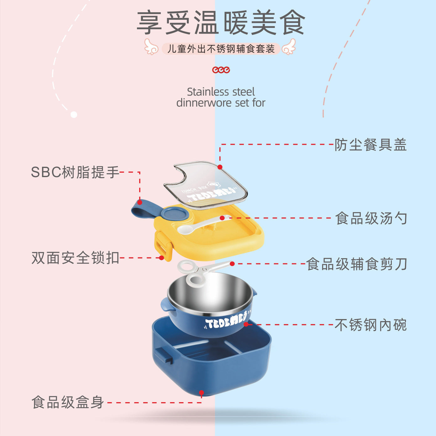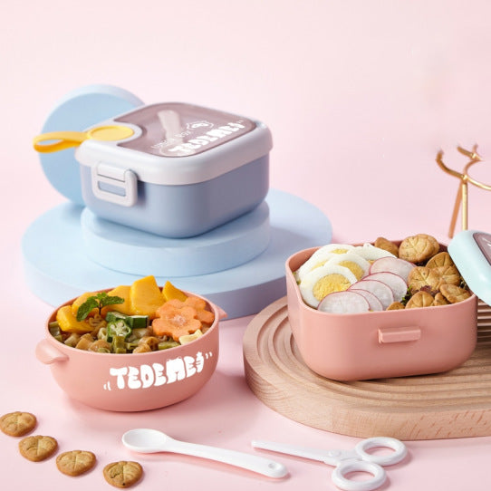 Keep your child’s food safe and fun with this colorful, sealed lunch bowl set 🍼🌈. Includes a durable plastic bowl and food-grade stainless steel lining for temperature retention. Comes with built-in tableware and a tight-fitting lid to prevent spills.