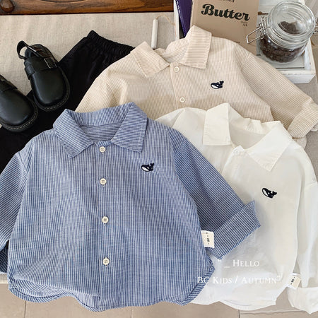 Boys Fish Embroidered Cardigan Shirt Long Sleeve