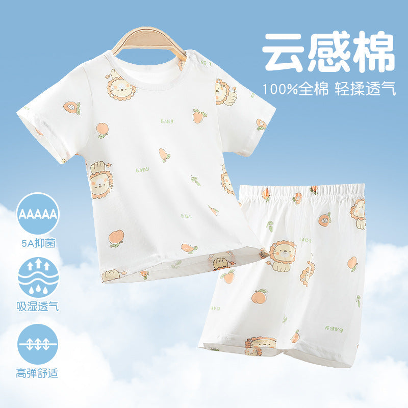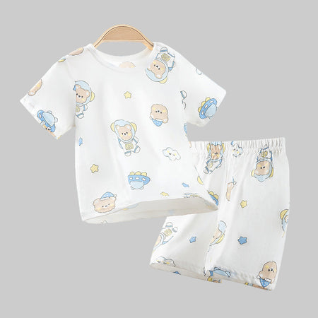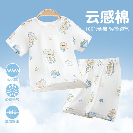 The lightweight fabric is gentle on delicate baby skin, while the loose fit allows for easy movement during play or sleep. Whether it's for lounging at home or staying cozy under the AC, this set is a must-have in every baby boy’s summer wardrobe! 👶💙