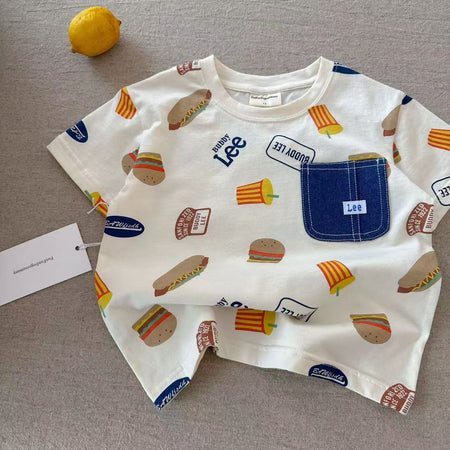 This trendy T-shirt features bold, kid-friendly patterns, a stylish pocket detail, and a comfy round neckline – making it a go-to choice for everything from school days to family outings or weekend fun. 🎨👕