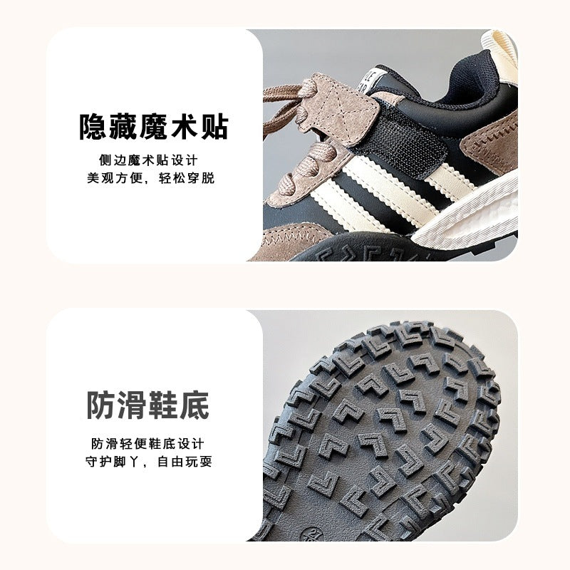 Featuring slip-resistant rubber soles, these sneakers ensure safe steps on all surfaces — ideal for school, playgrounds, and outdoor sports. The casual yet sporty look pairs perfectly with any outfit, from jeans to shorts or casual pants. 👖🩳