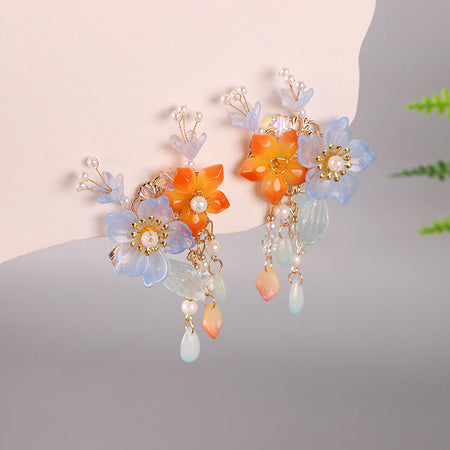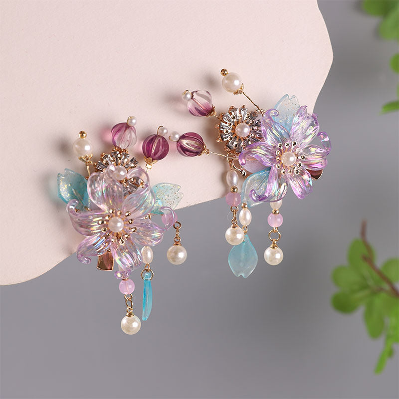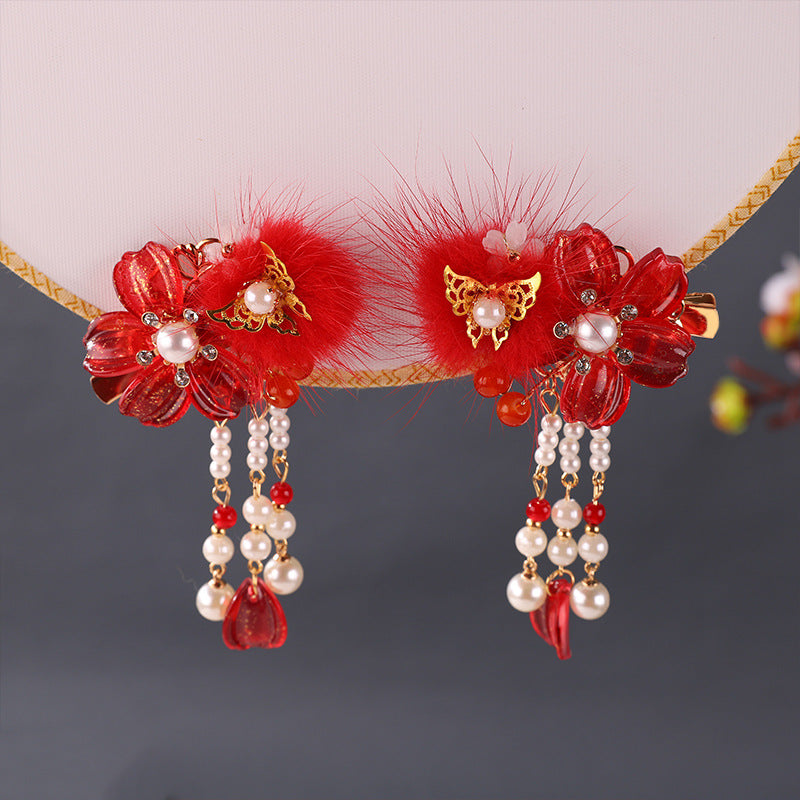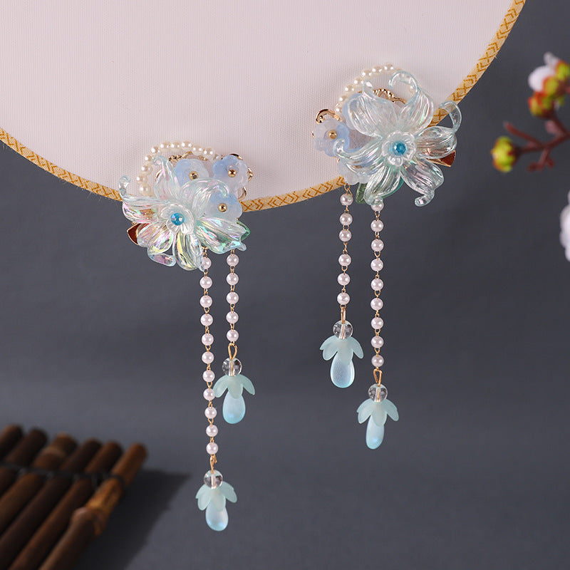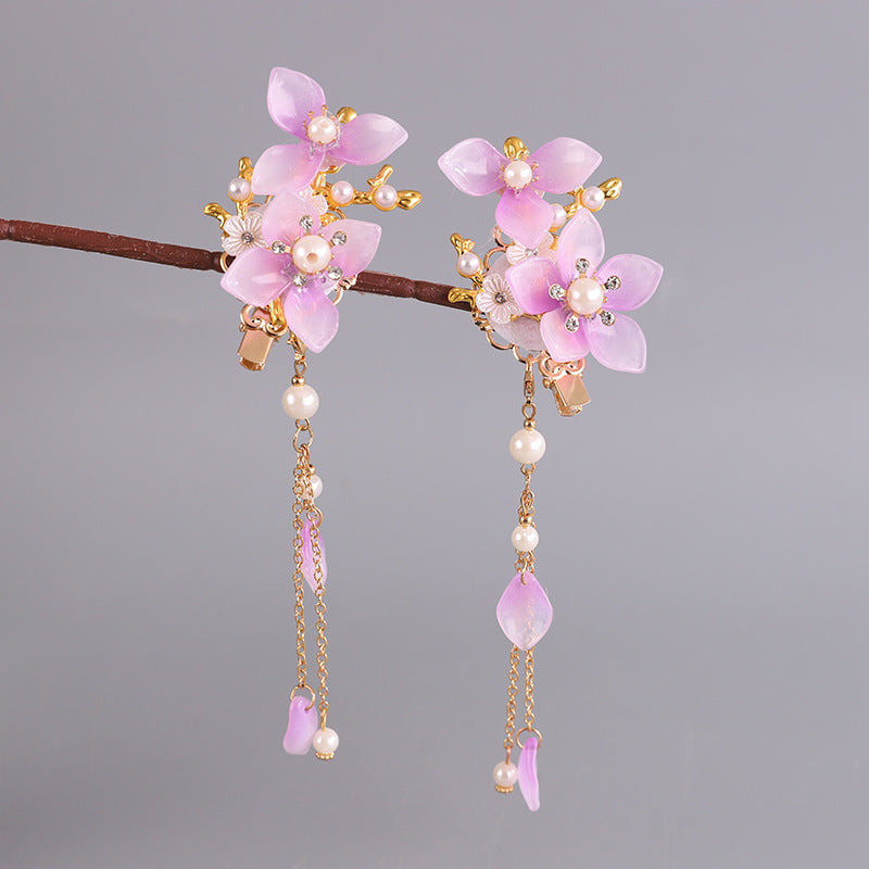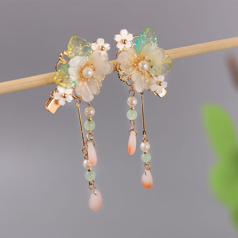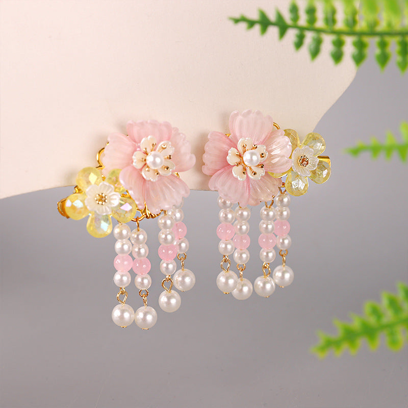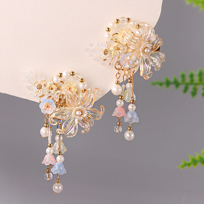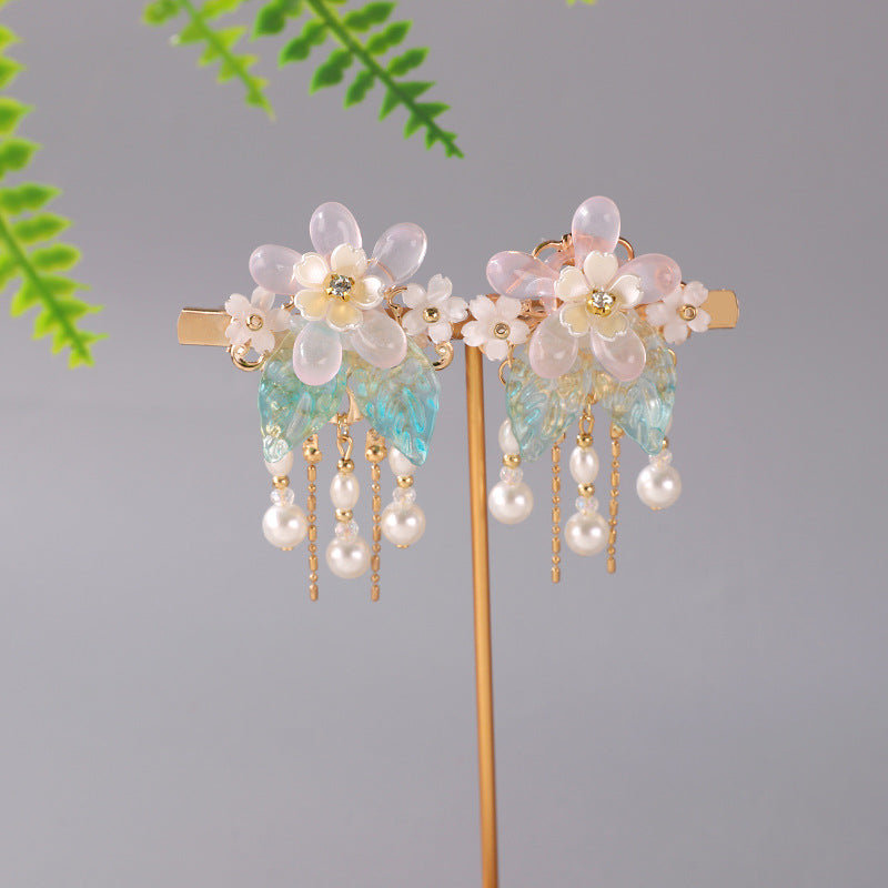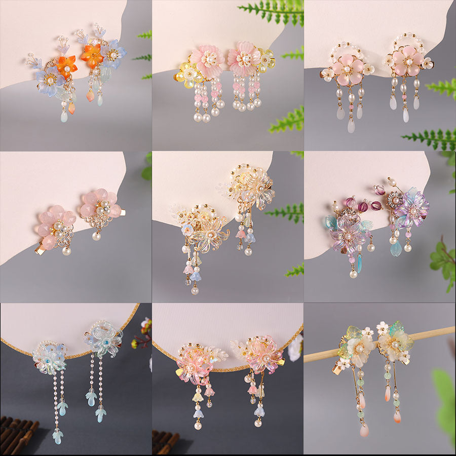 This super fairy-style Hanfu hair accessory set is inspired by traditional Chinese Tang Dynasty fashion, made just for young girls. With soft tassels, delicate beads, and classic floral designs, it's perfect for photoshoots, school events, or dress-up days.