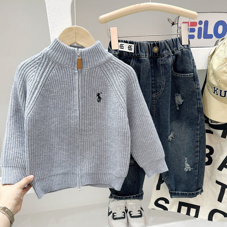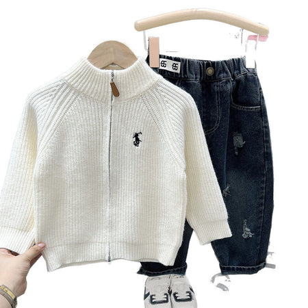 Boys’ Pure Color Twist Sweater Cardigan Autumn Winter
