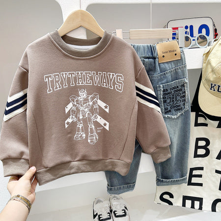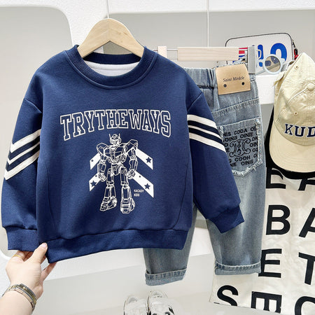 Kids’ Cartoon Print Sweatshirt – Boys’ Autumn Casual Top