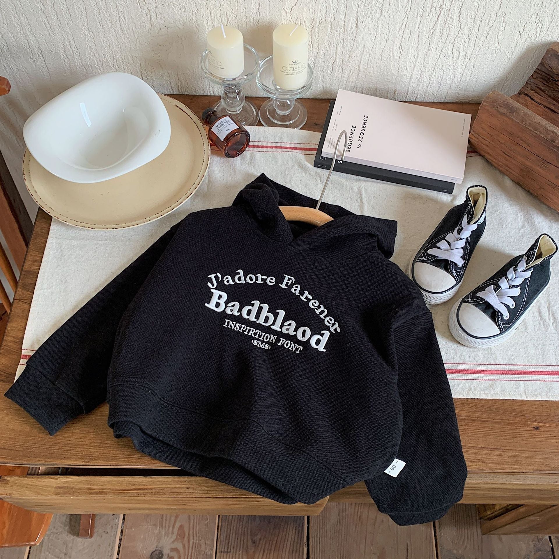 🍂 Update your child’s wardrobe with this Boys’ Hooded Pullover Sweatshirt, designed for autumn fashion and perfect for middle-aged kids. With its embroidered letter design, this sweatshirt offers a simple yet trendy style that works well for school, play, or casual outings.