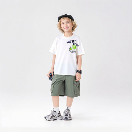 Featuring a bold shoulder print and sporty design, this tee brings Korean fashion vibes with a youthful twist. 🏃♂️🎽 The short sleeves and casual neckline offer extra comfort, while the unique graphic adds a cool touch your kid will love.