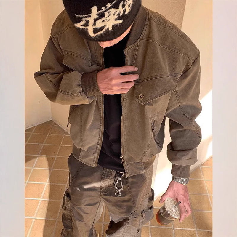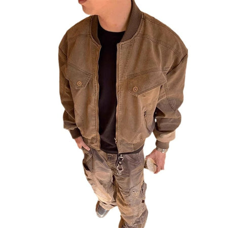 Brown Harrington Jacket – Men’s Retro Aviator Baseball Coat