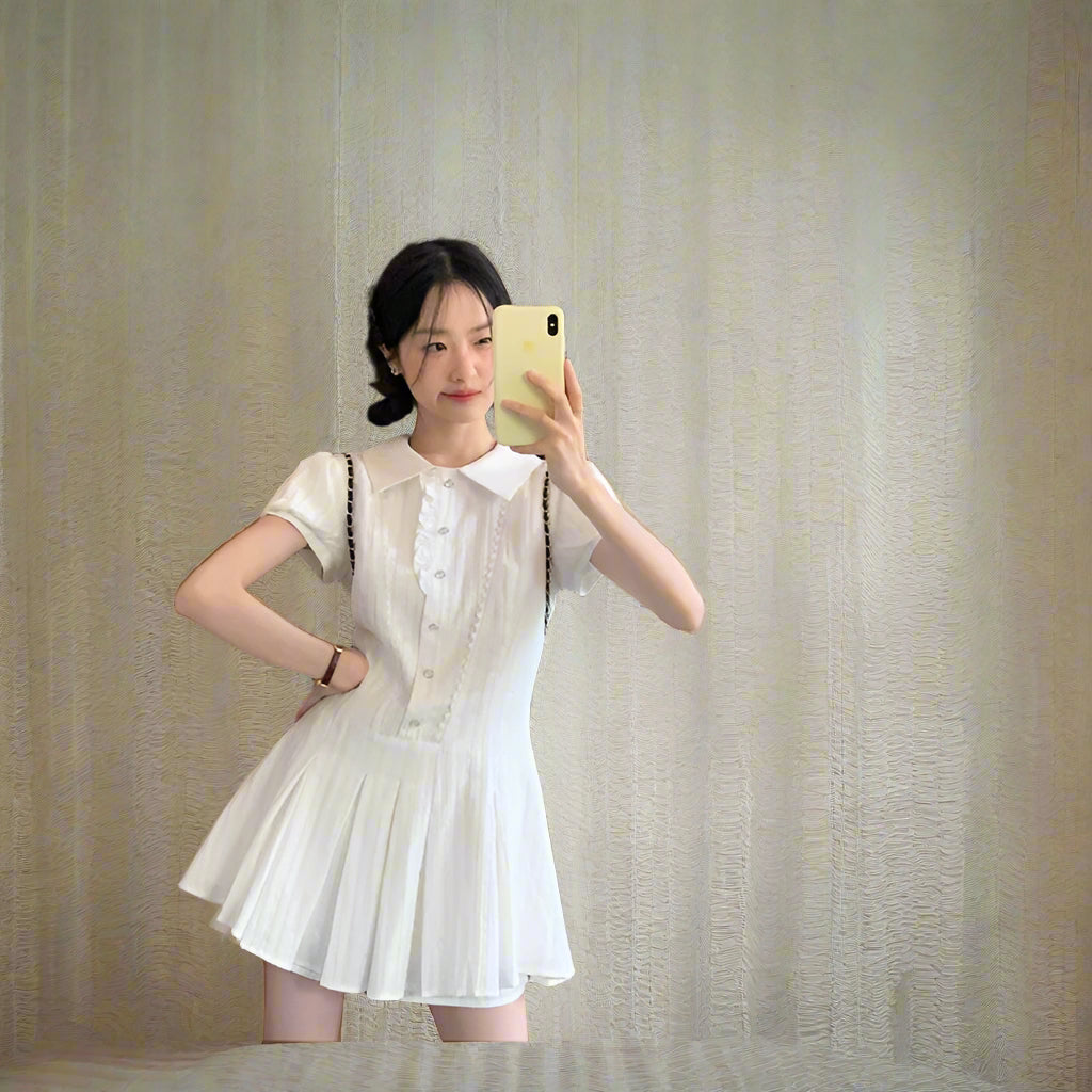 π Timeless College-Inspired Style: Classic lapel collar and puff sleeves for a youthful, chic vibe.