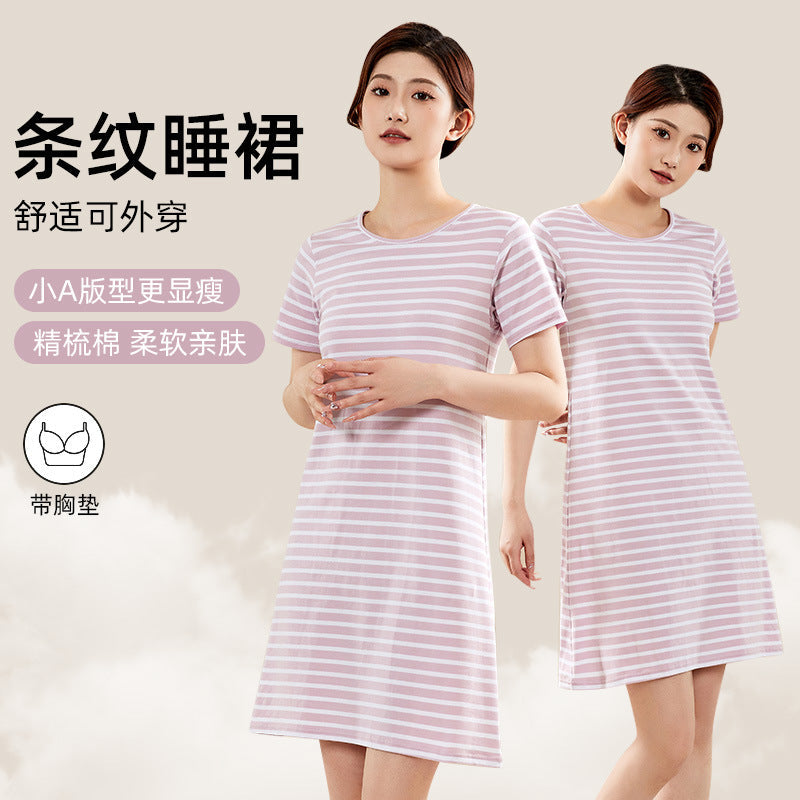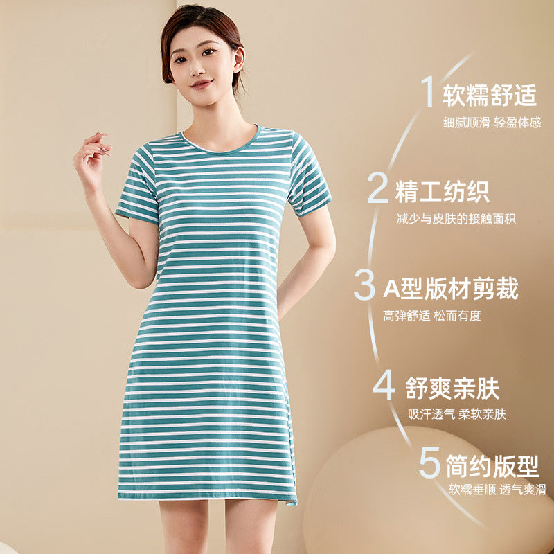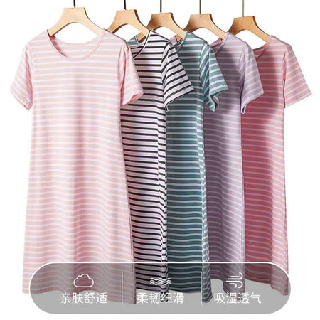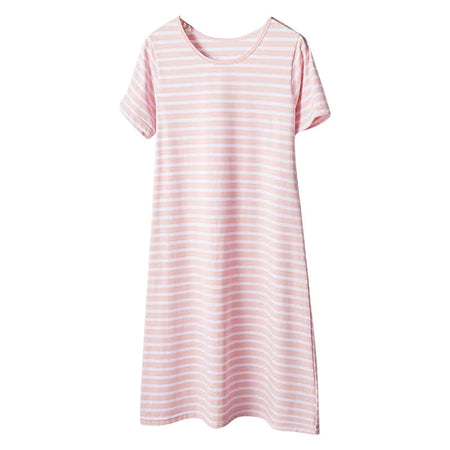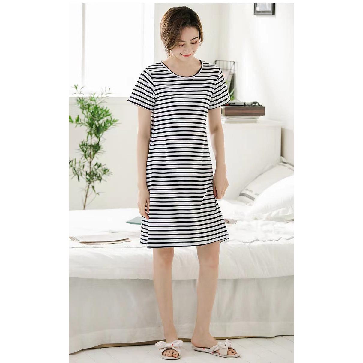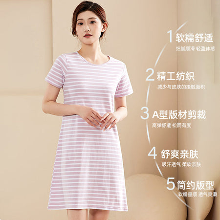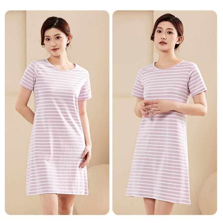 Stay cool, comfy, and covered this summer with our Combed Cotton Short-Sleeved Nightdress for Women! 🌸 Made from soft, breathable combed cotton, this anti-light nightgown keeps you feeling fresh all night while offering full coverage and built-in chest support — no need for a bra! 😌