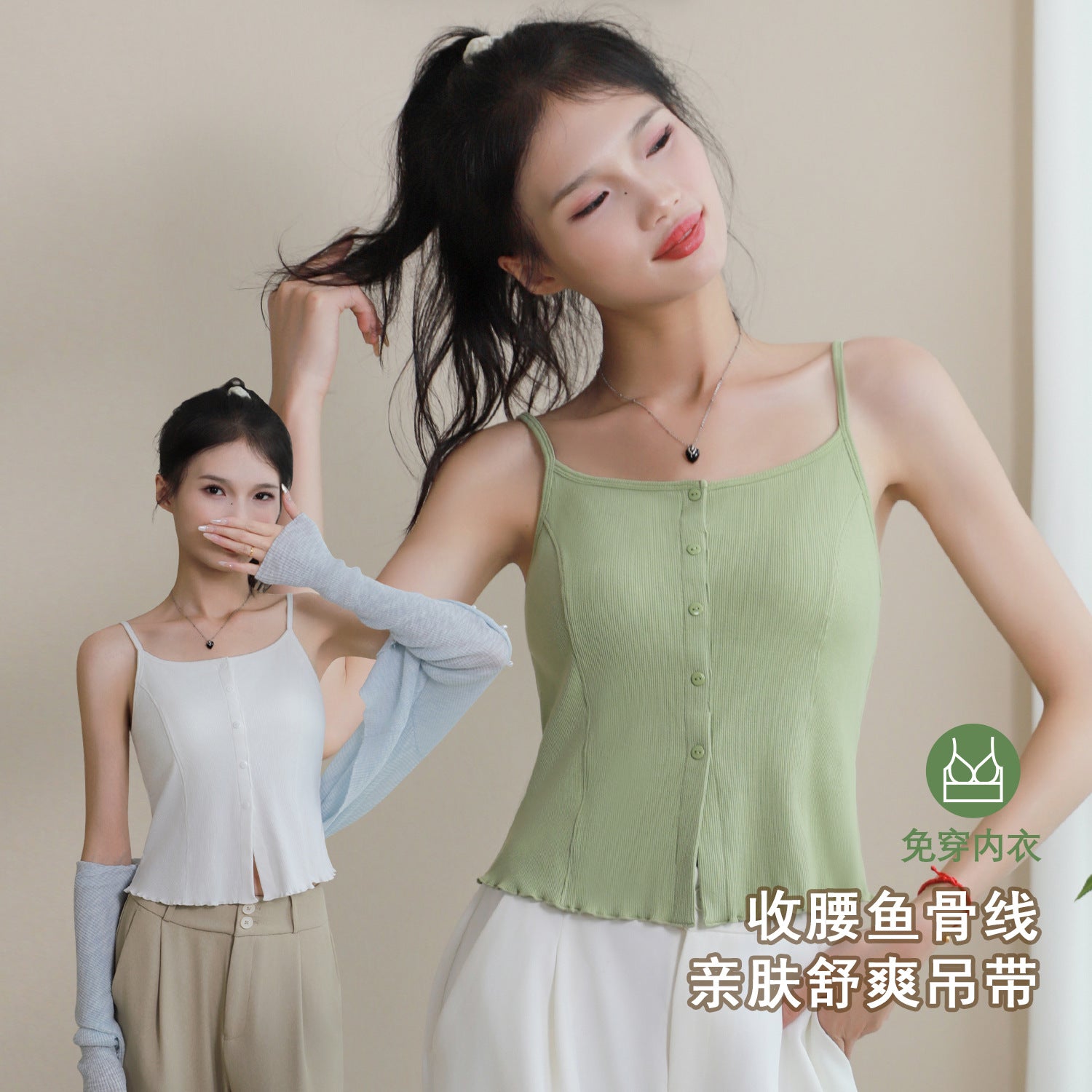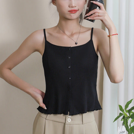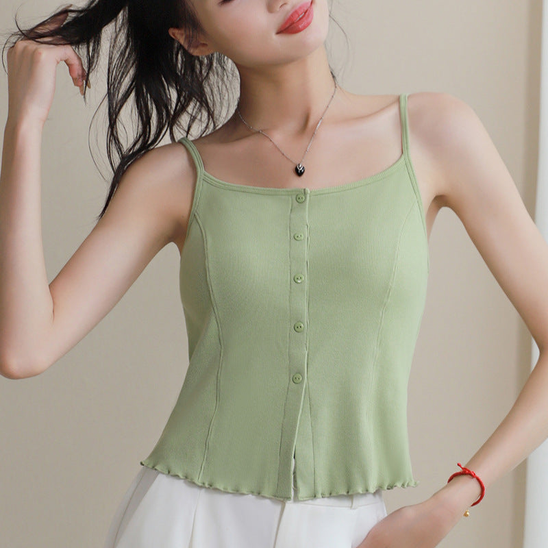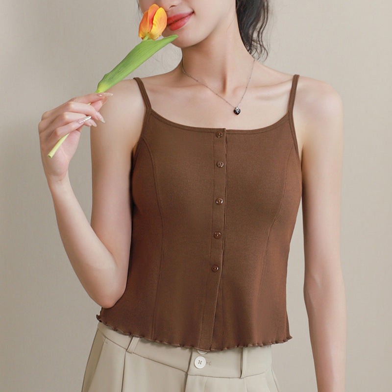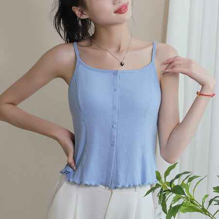 U-Neck Button Camisole with Chest Pad โ Sweet & Spicy