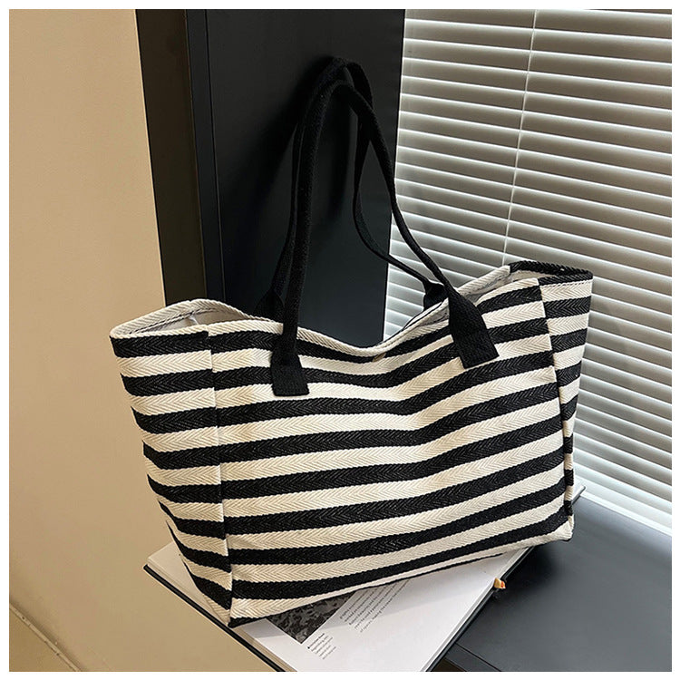 Striped Canvas Tote – Large Capacity Commuter Bag