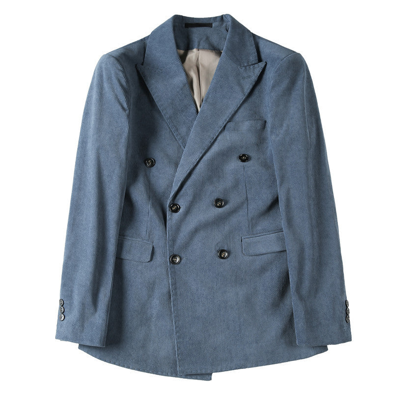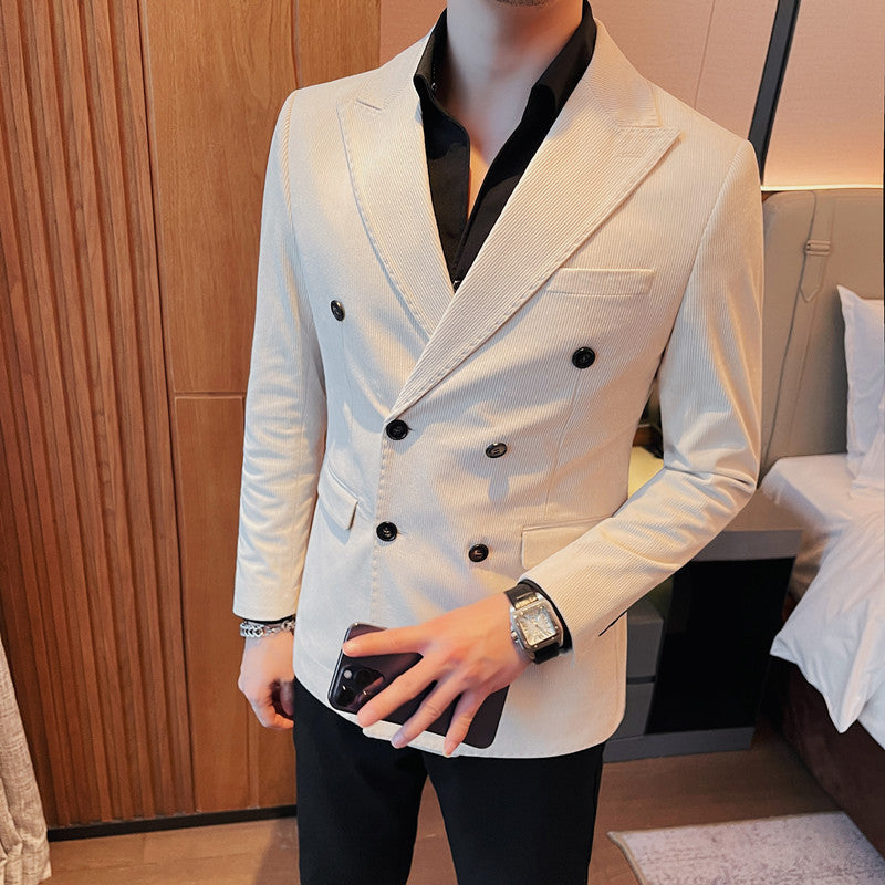Men’s Corduroy Striped Double-Breasted Suit – Slim Casual