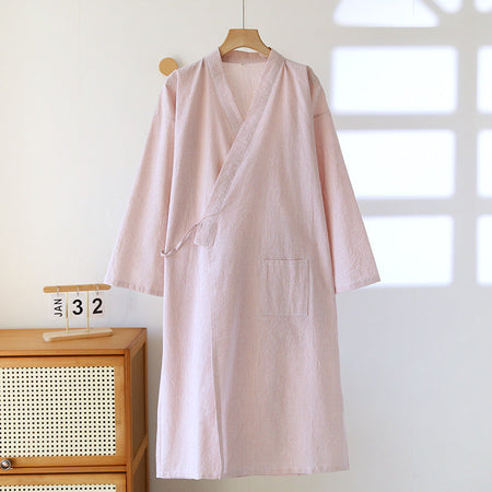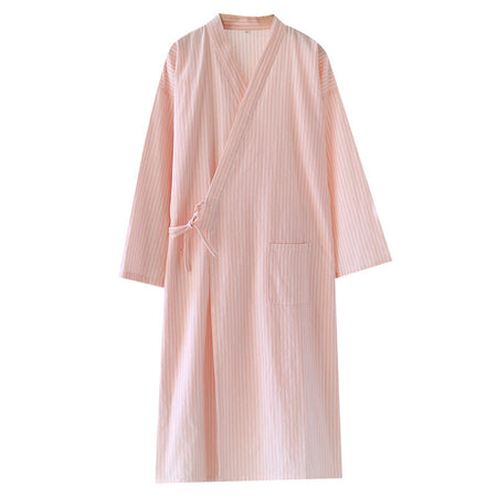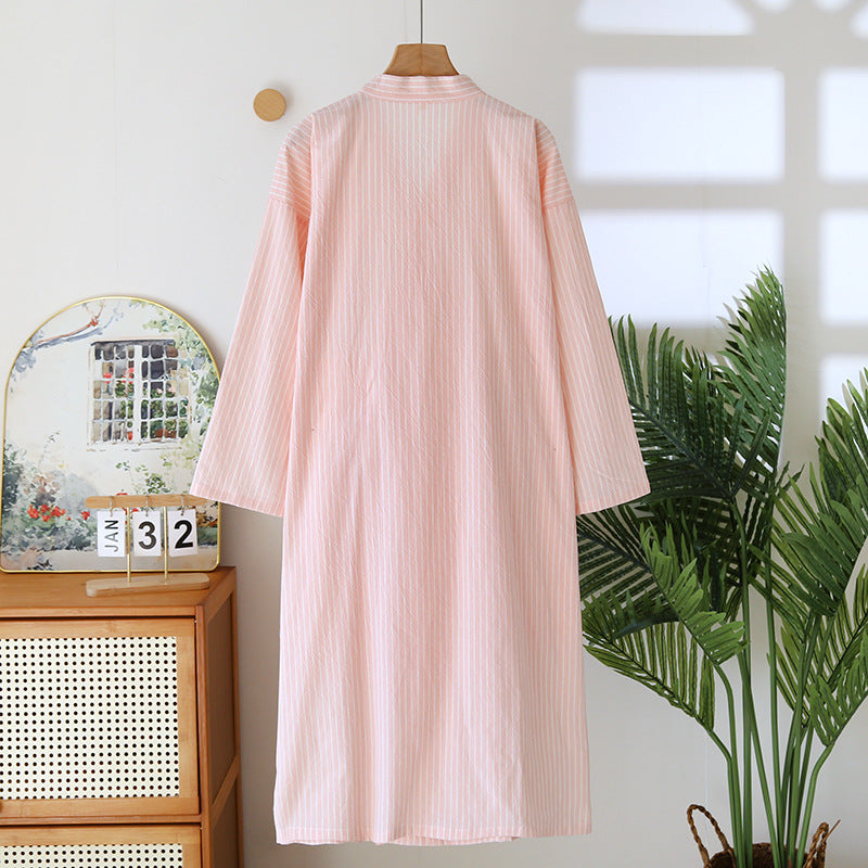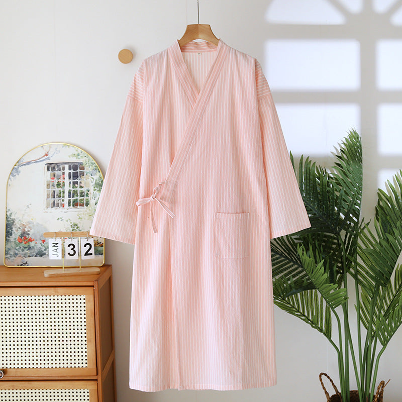 Embrace natural comfort with this Japanese-style striped cotton kimono bathrobe for women! 🇯🇵🌸 Made from 100% pure cotton gauze, it features a double-layer thin design that’s soft, breathable, and perfect for spring, summer, or autumn in Nepal 🇳🇵☀️🍃.