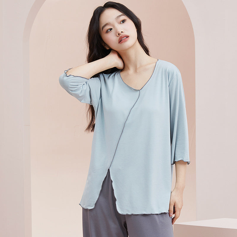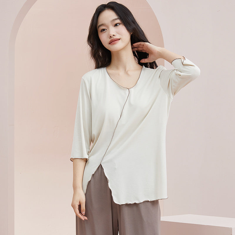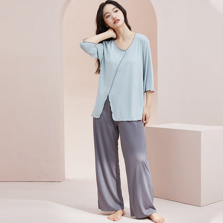 Cool Cotton Pajama Set with Chest Pad for Women